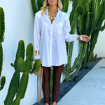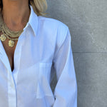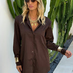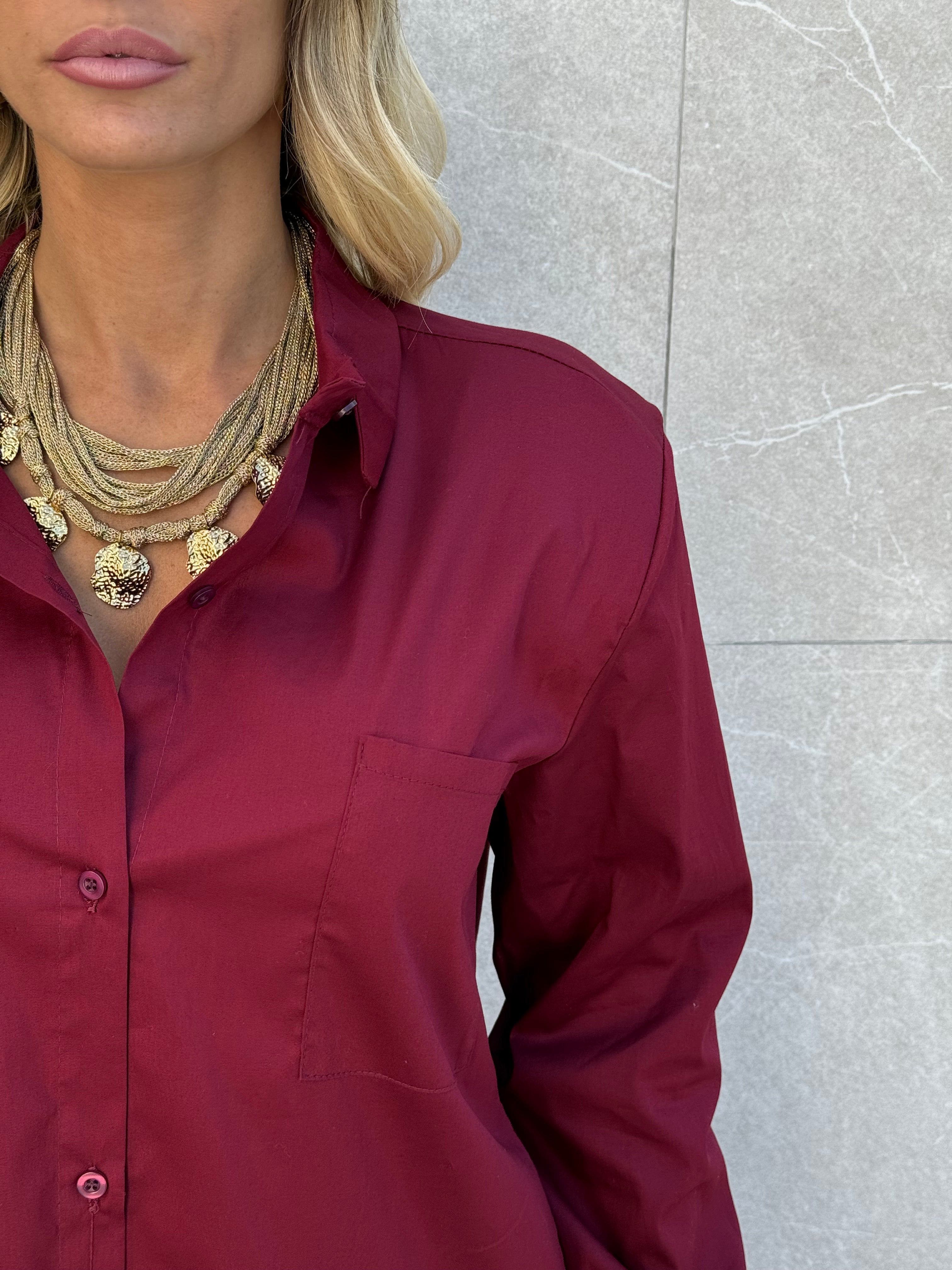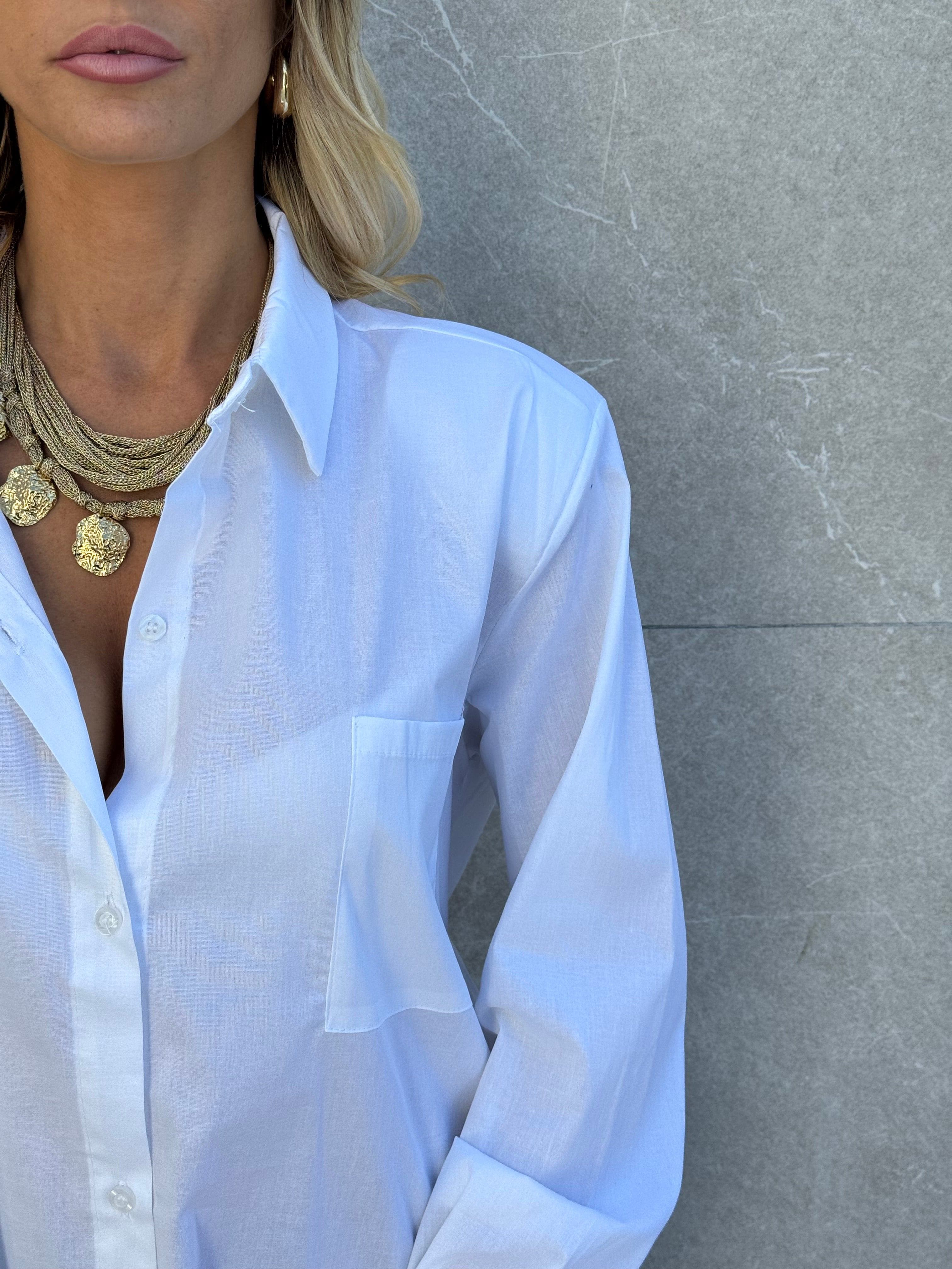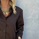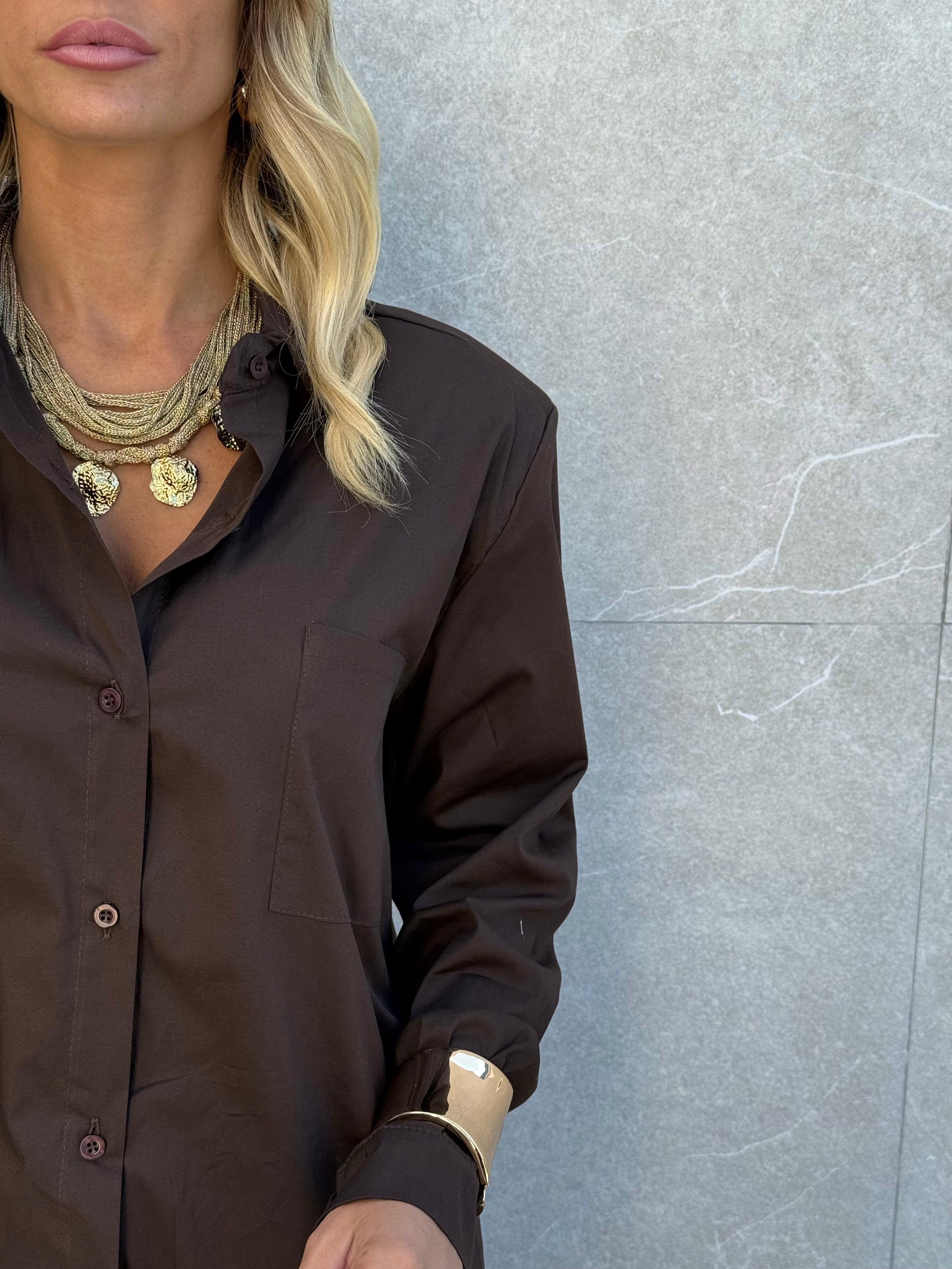 Camicione lungo con spallina imbottita e taschino sul petto.