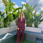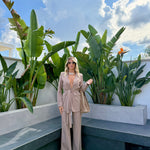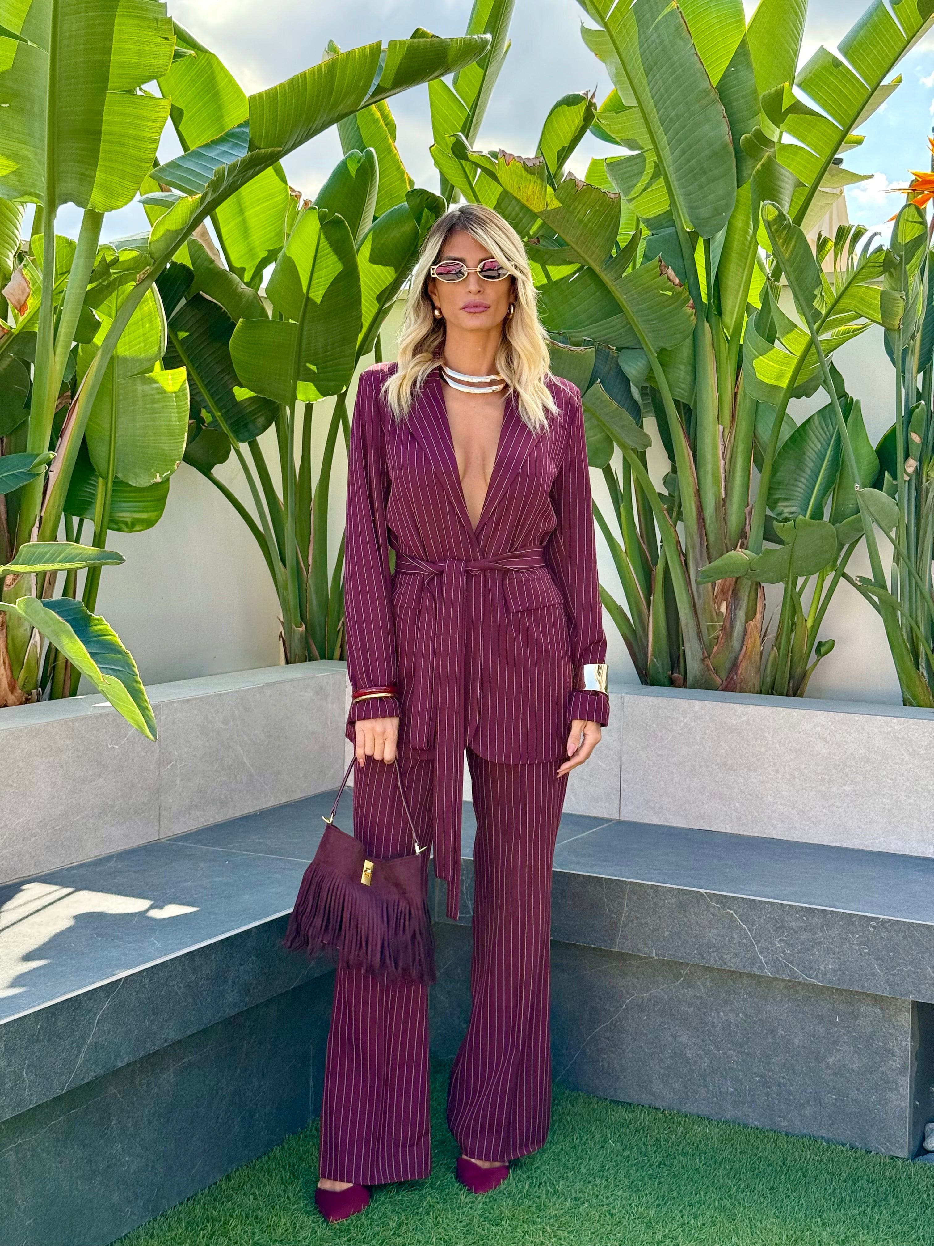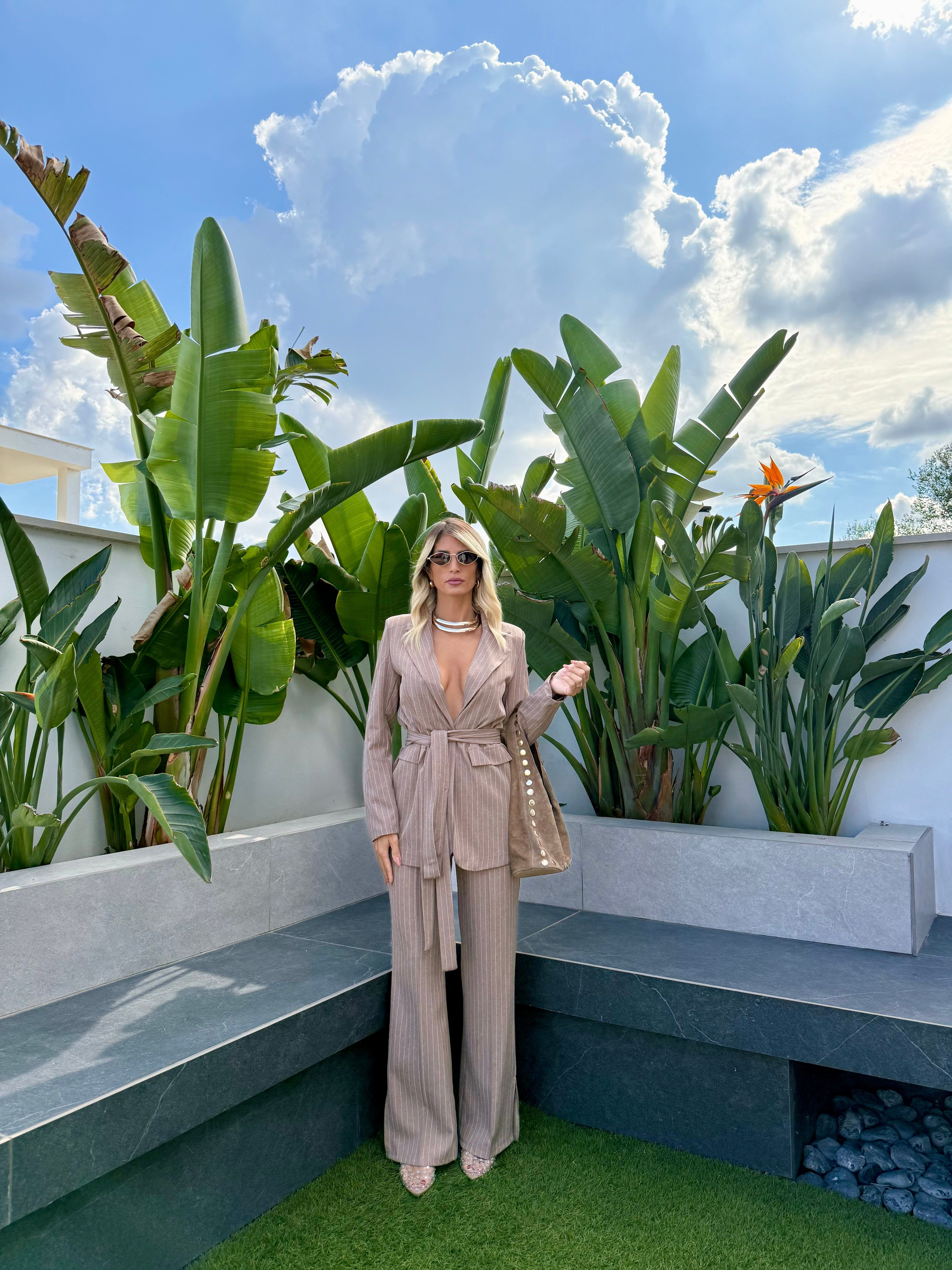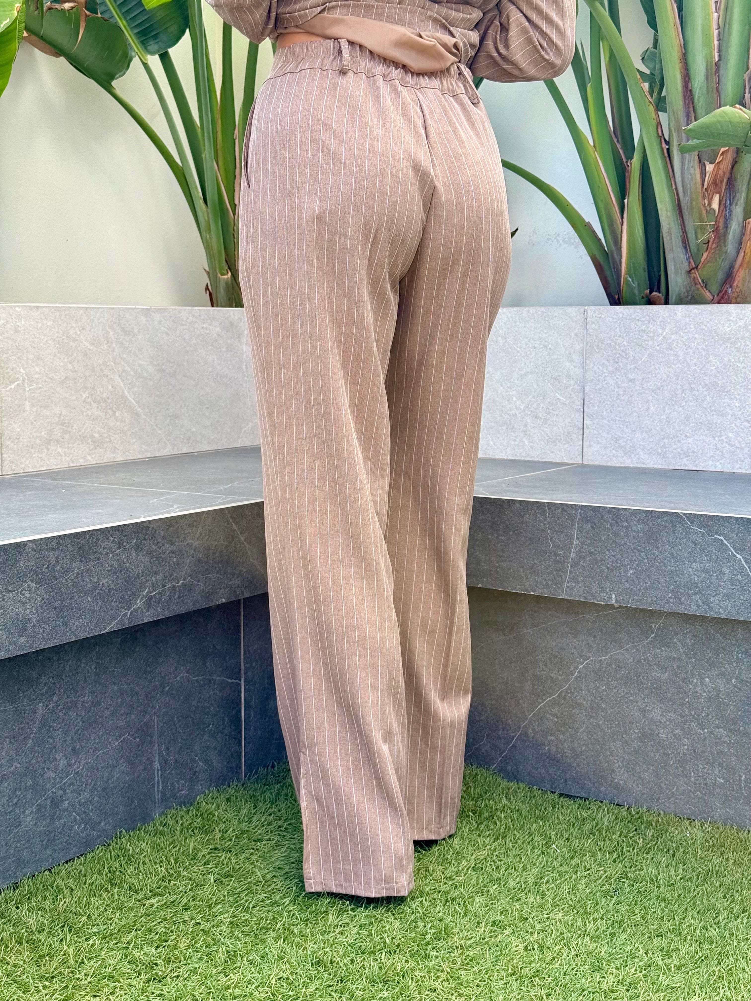 il pantalone ha l’elastico in vita, veste fino a una taglia 46 ed ha lo spacco laterale.