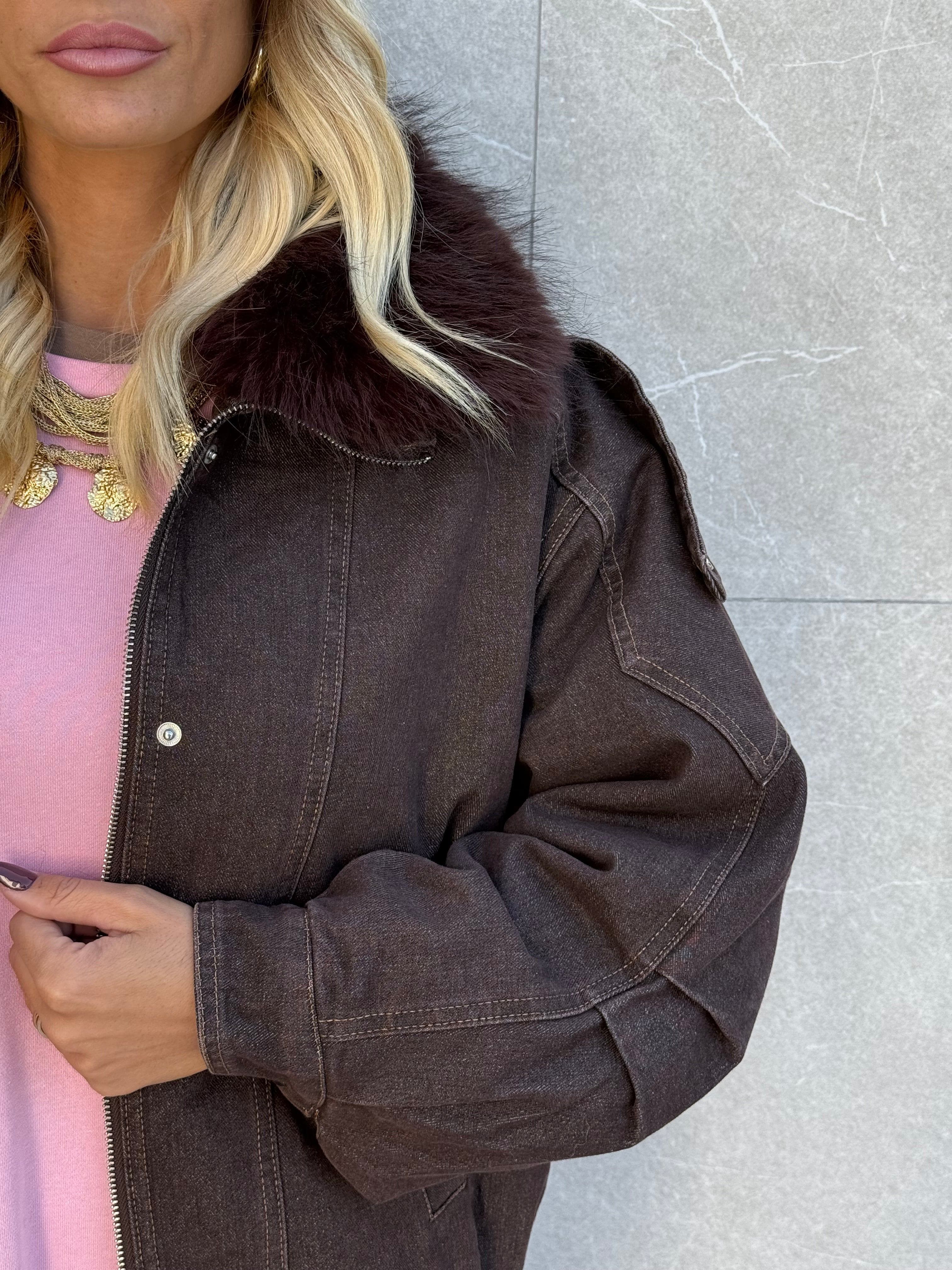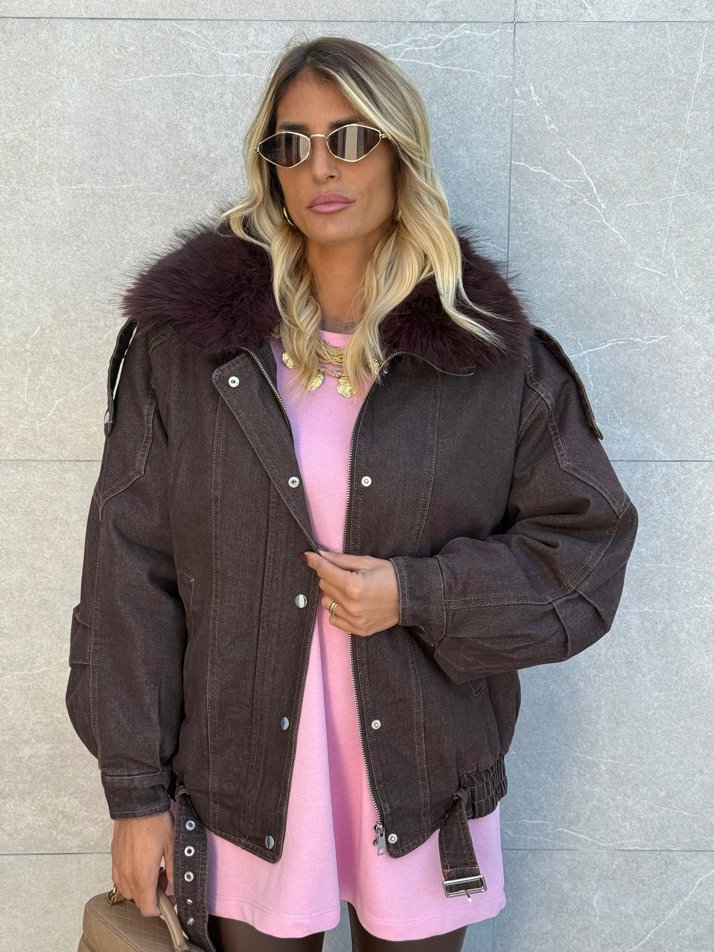Giubbino Denim pelliccia BROWN