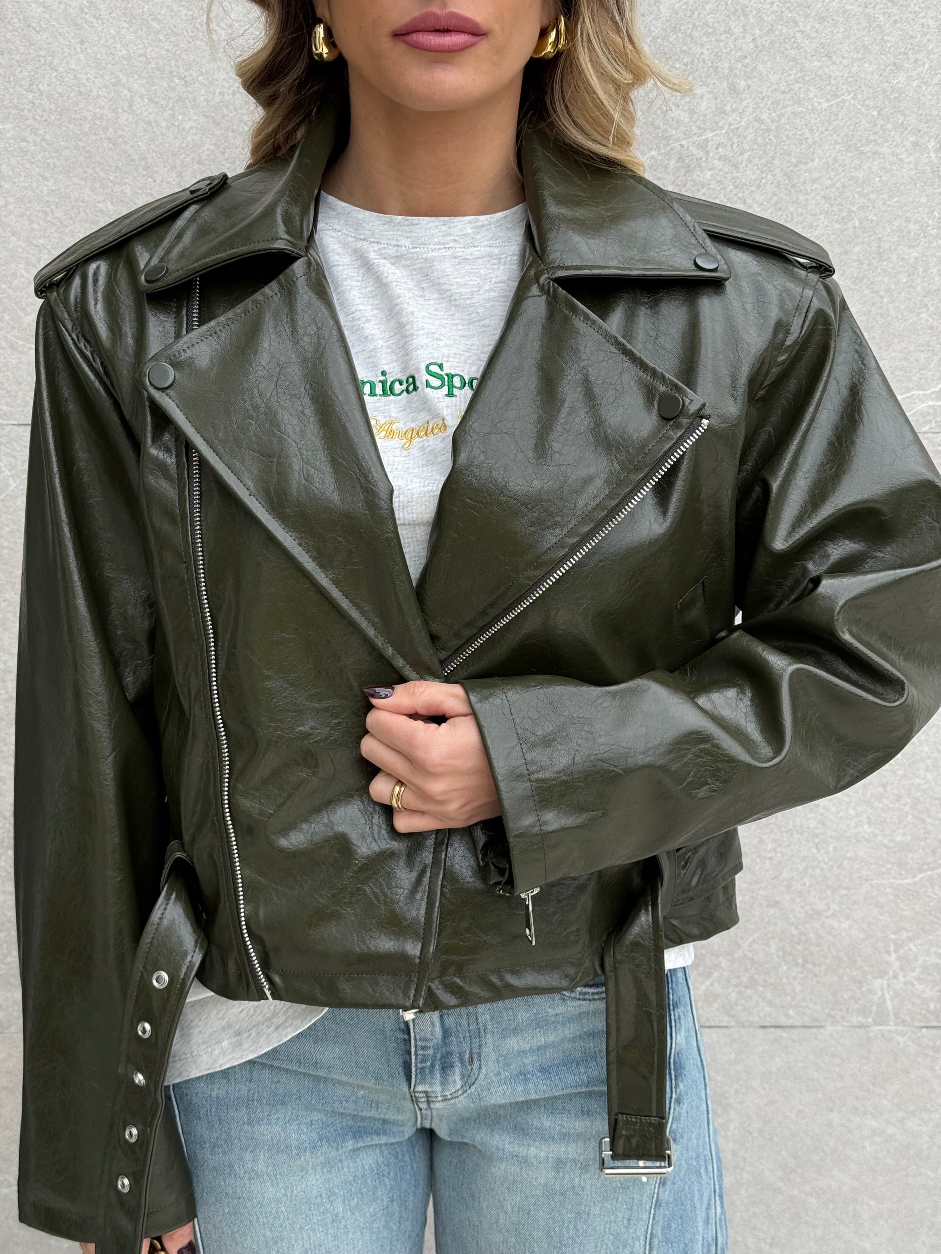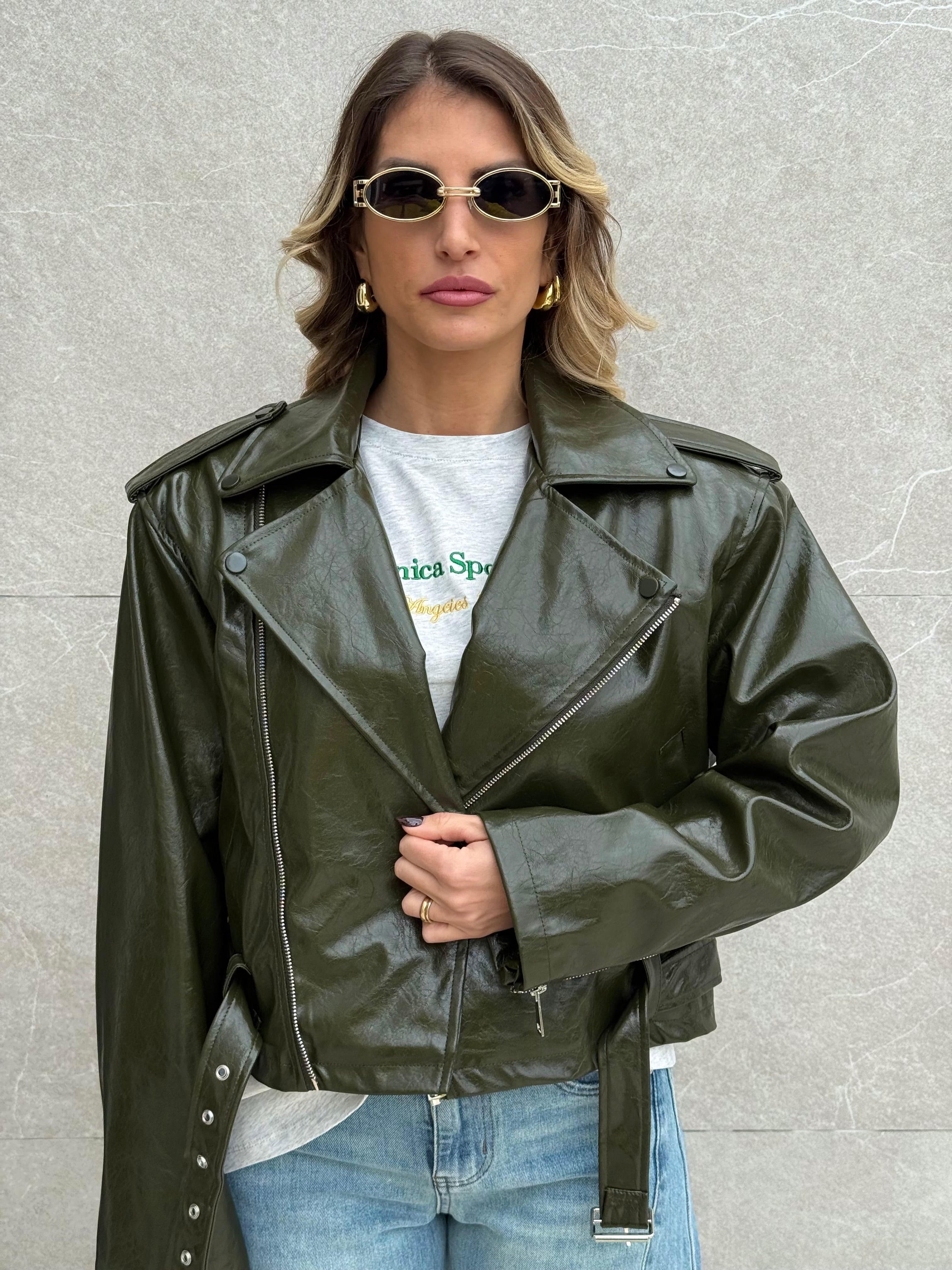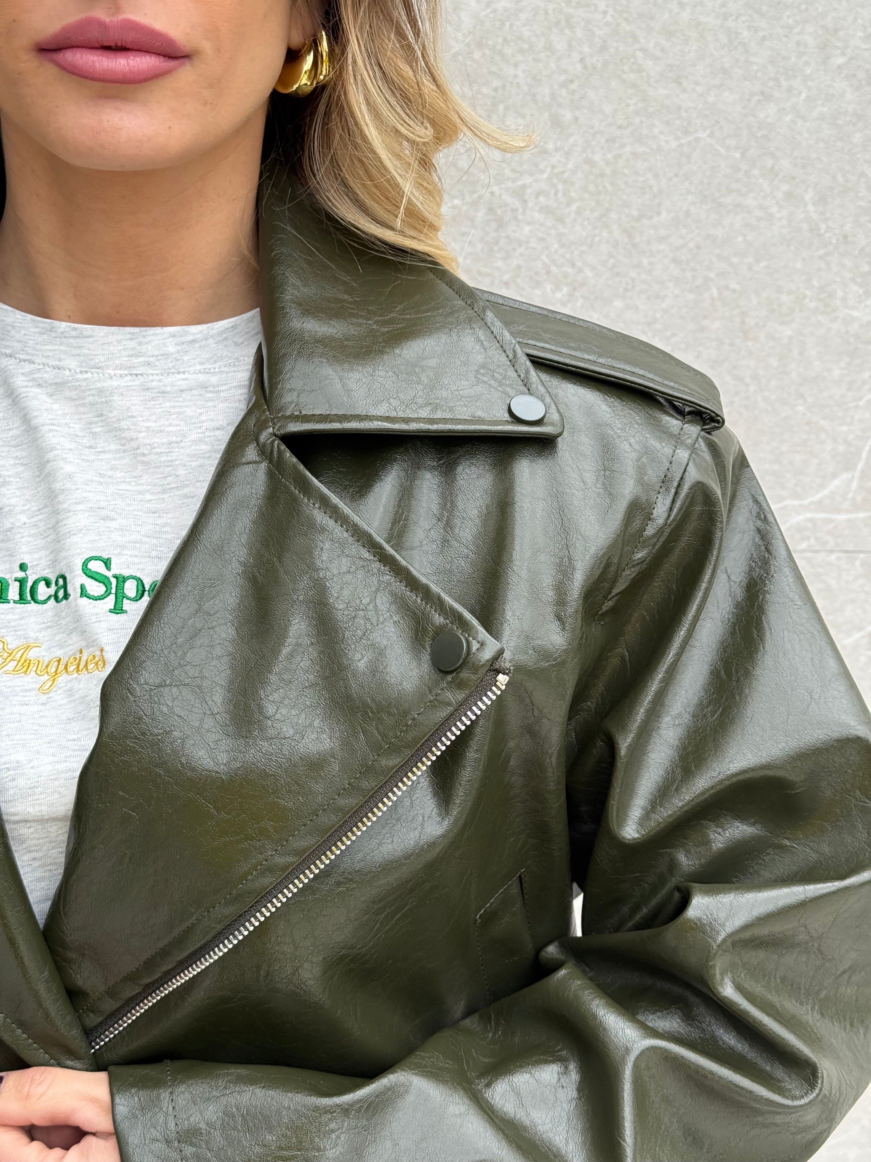 Chiodo premium quality con spallina imbottita effetto vernice.
