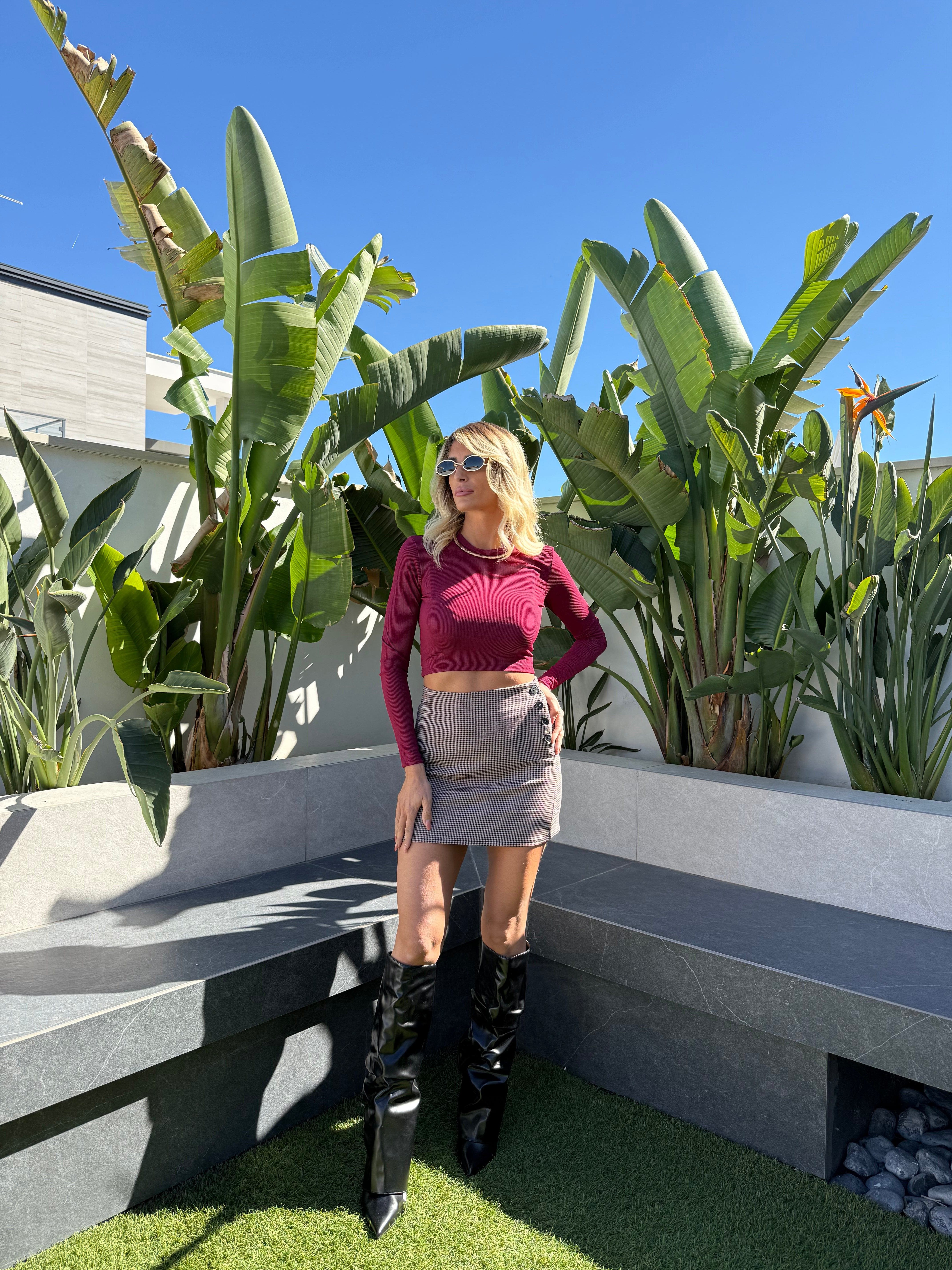Gonna pied de poule con elastico in vita e bottoni laterali.