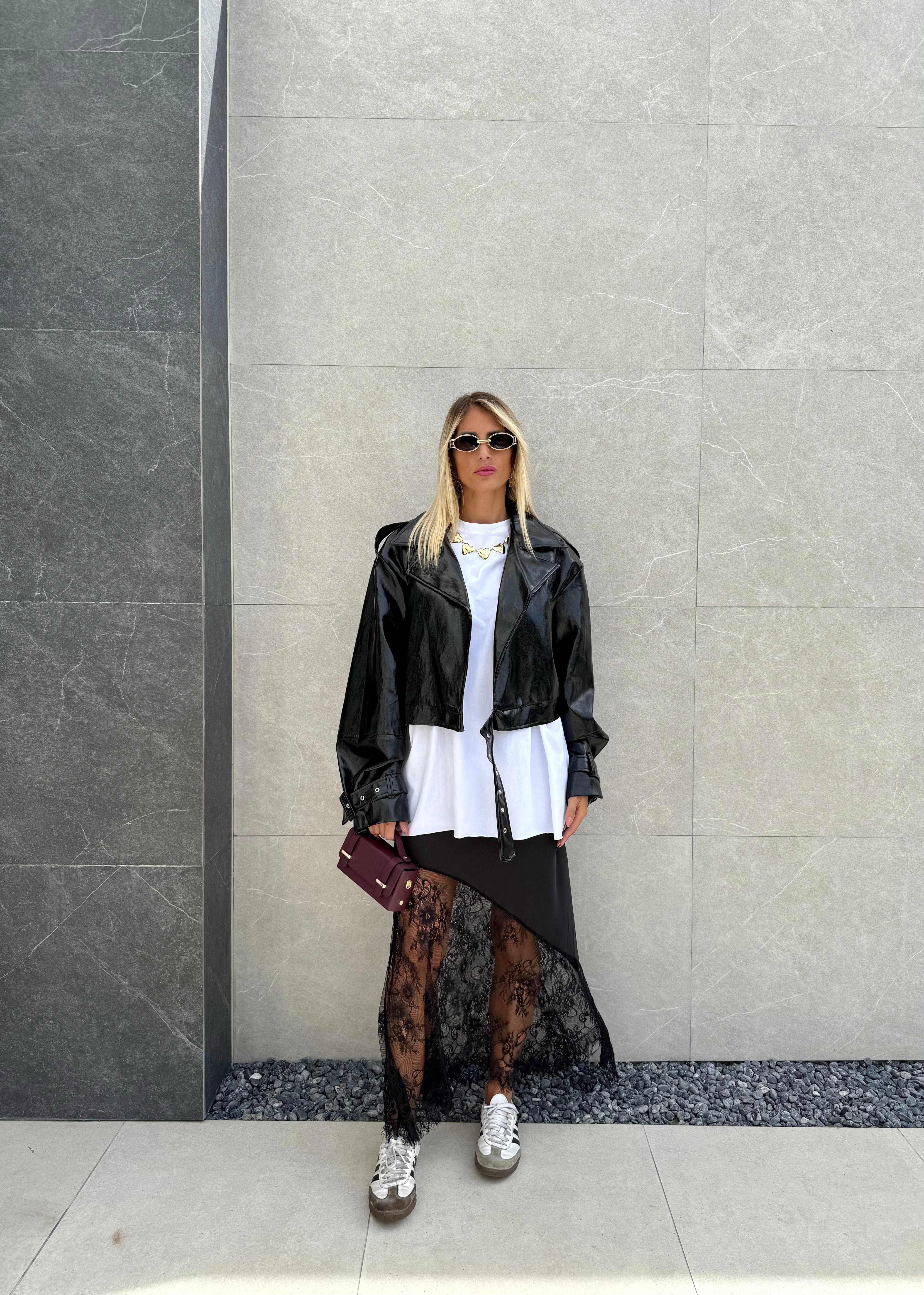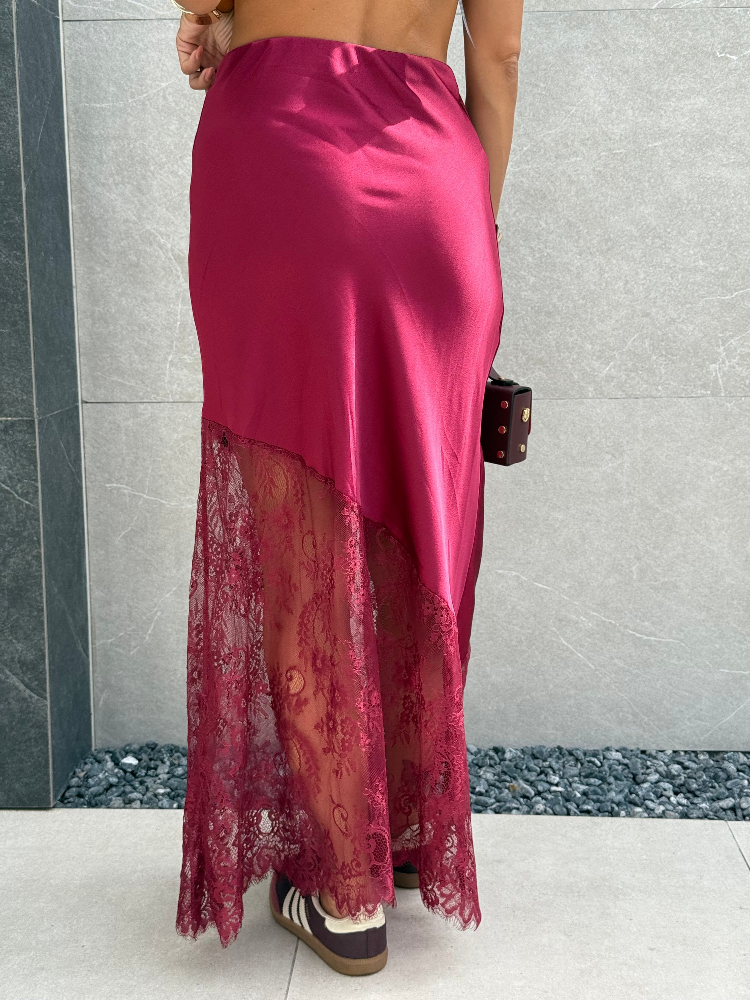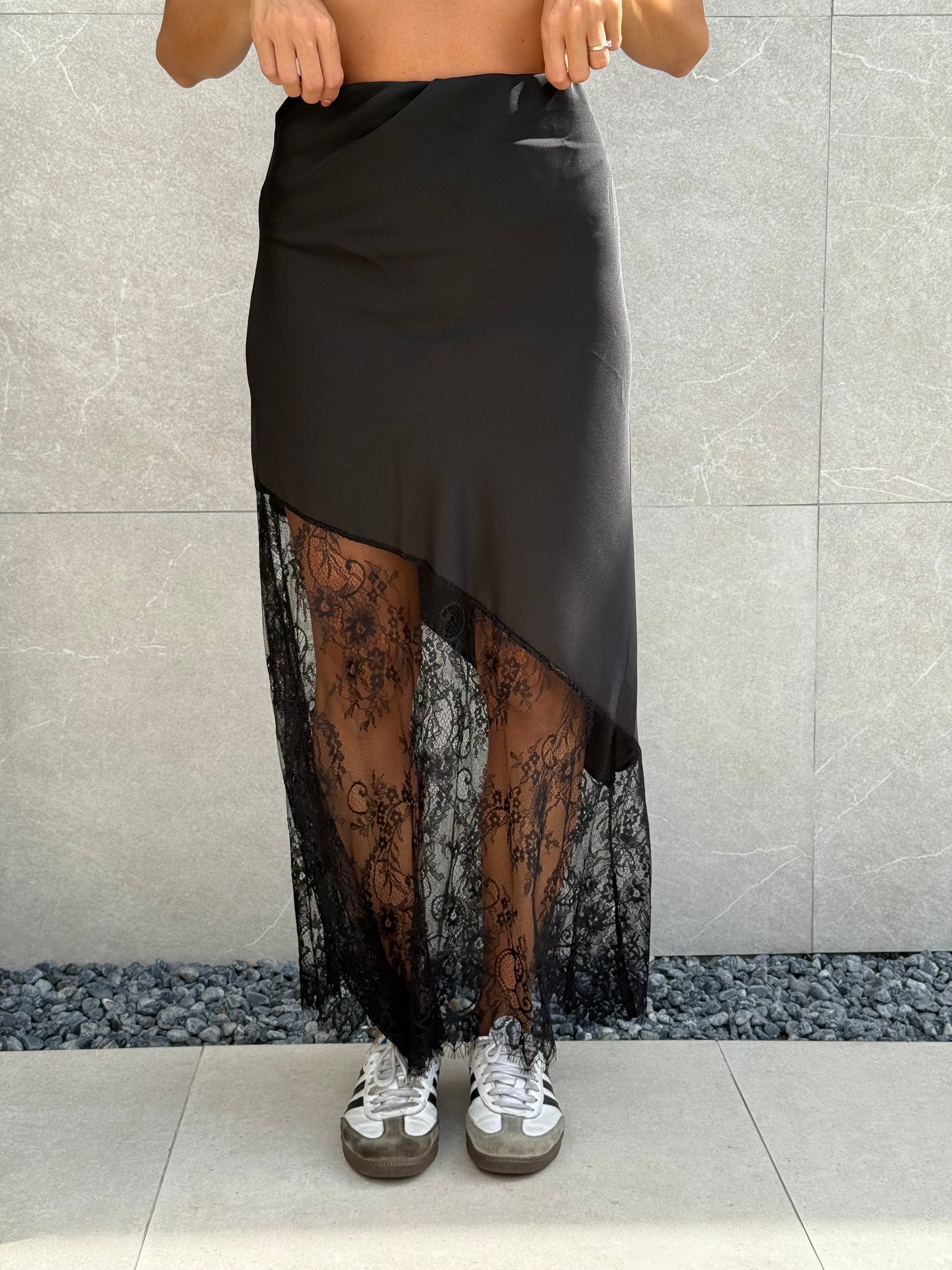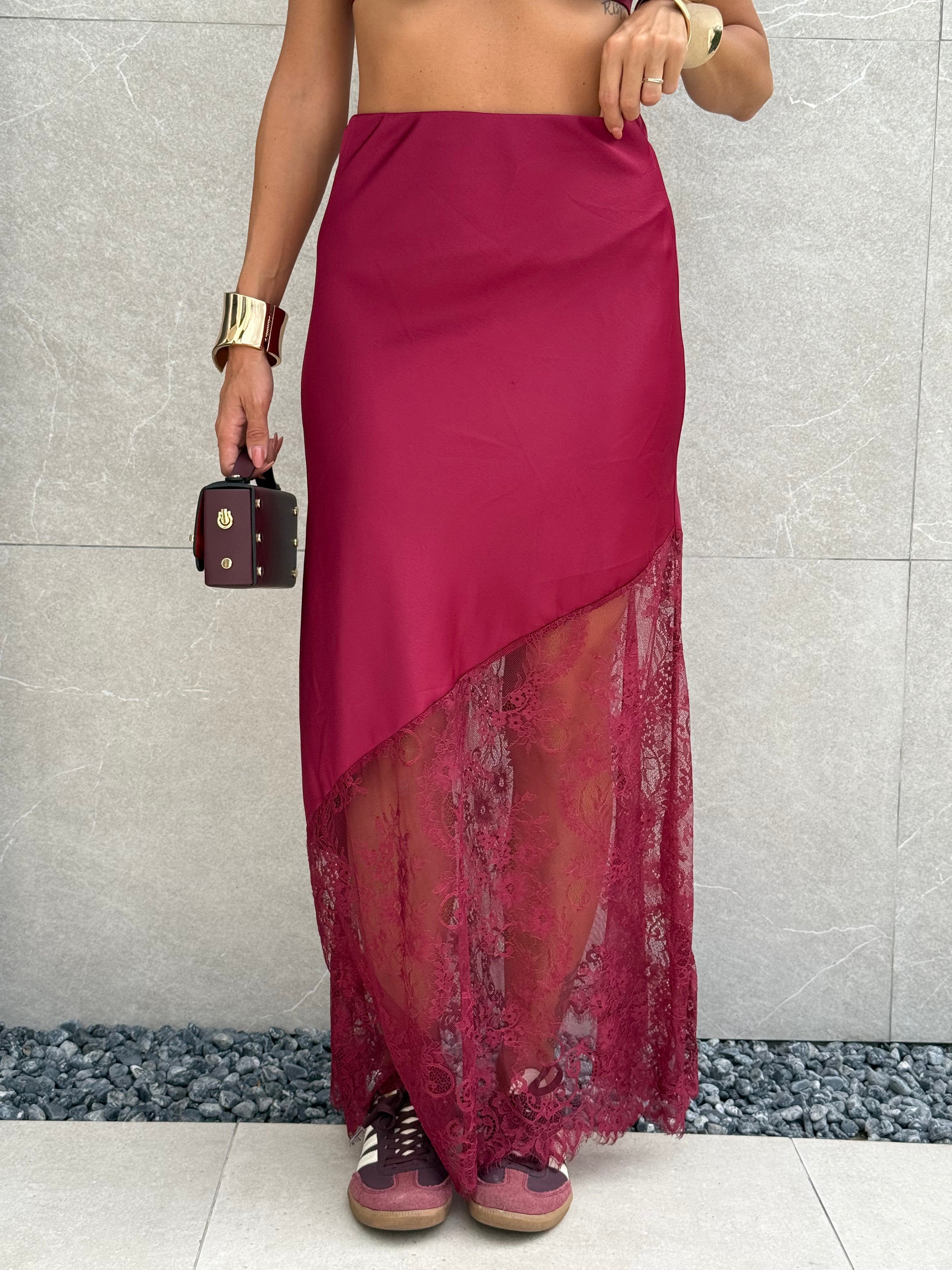Longuette in raso con fondo in pizzo con elastico in vita.