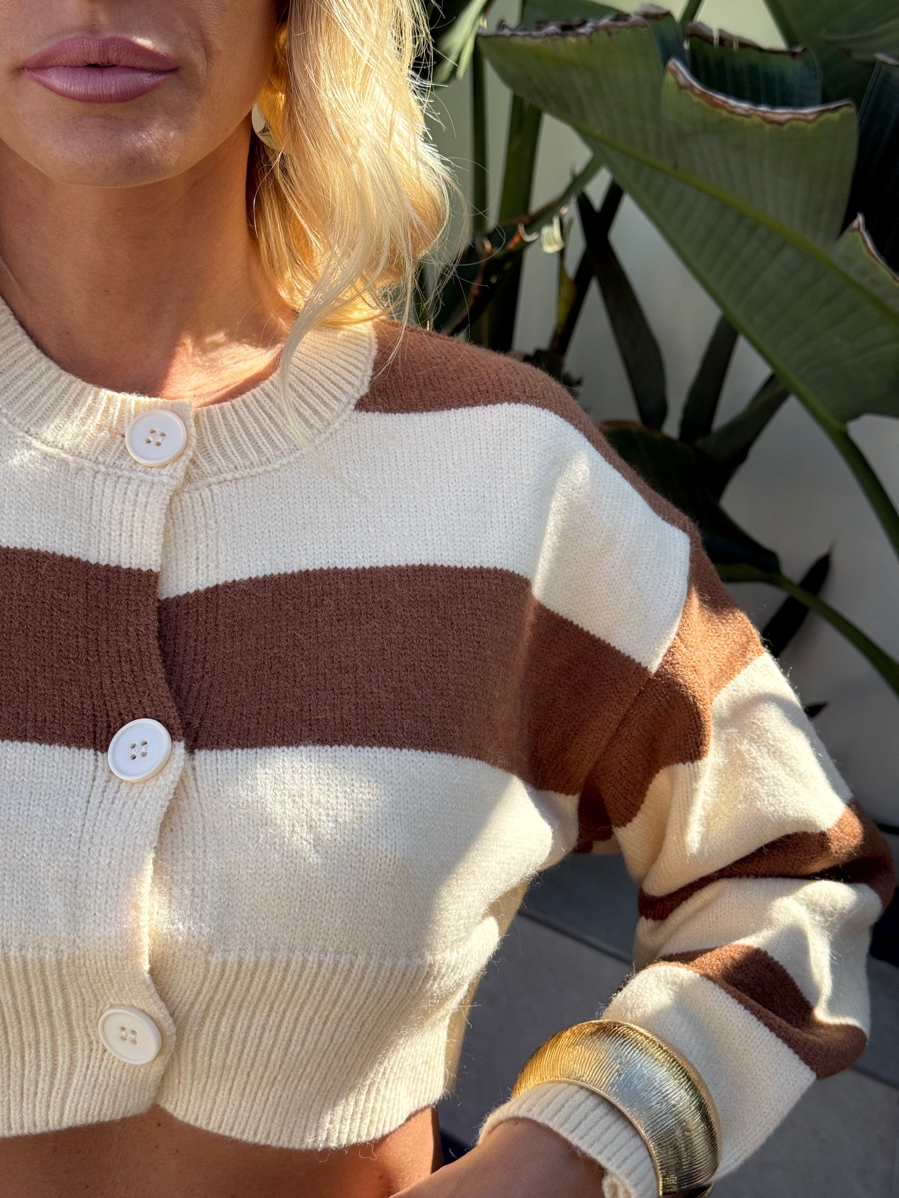 Cardigan a righe larghe con bottoni crop