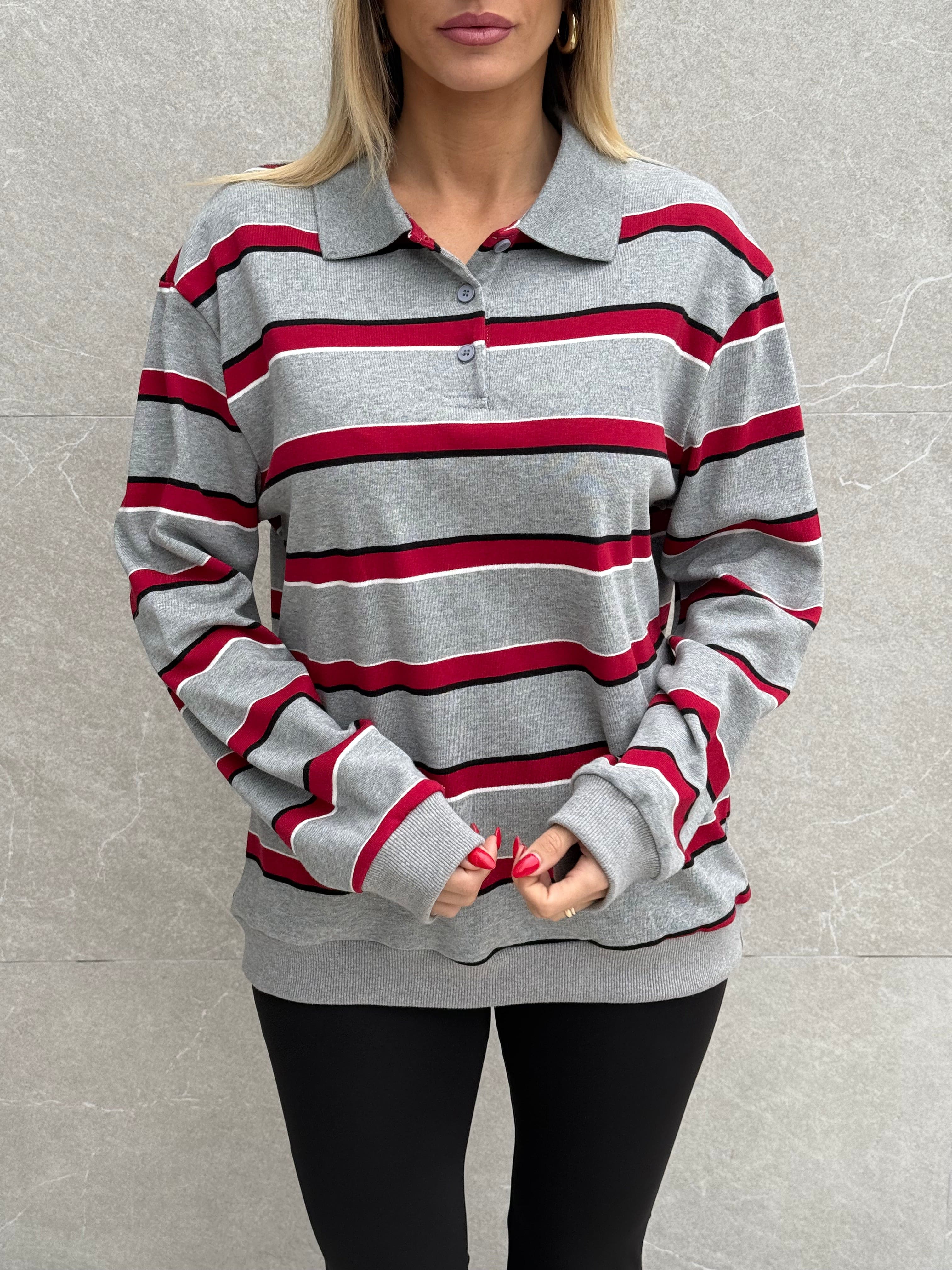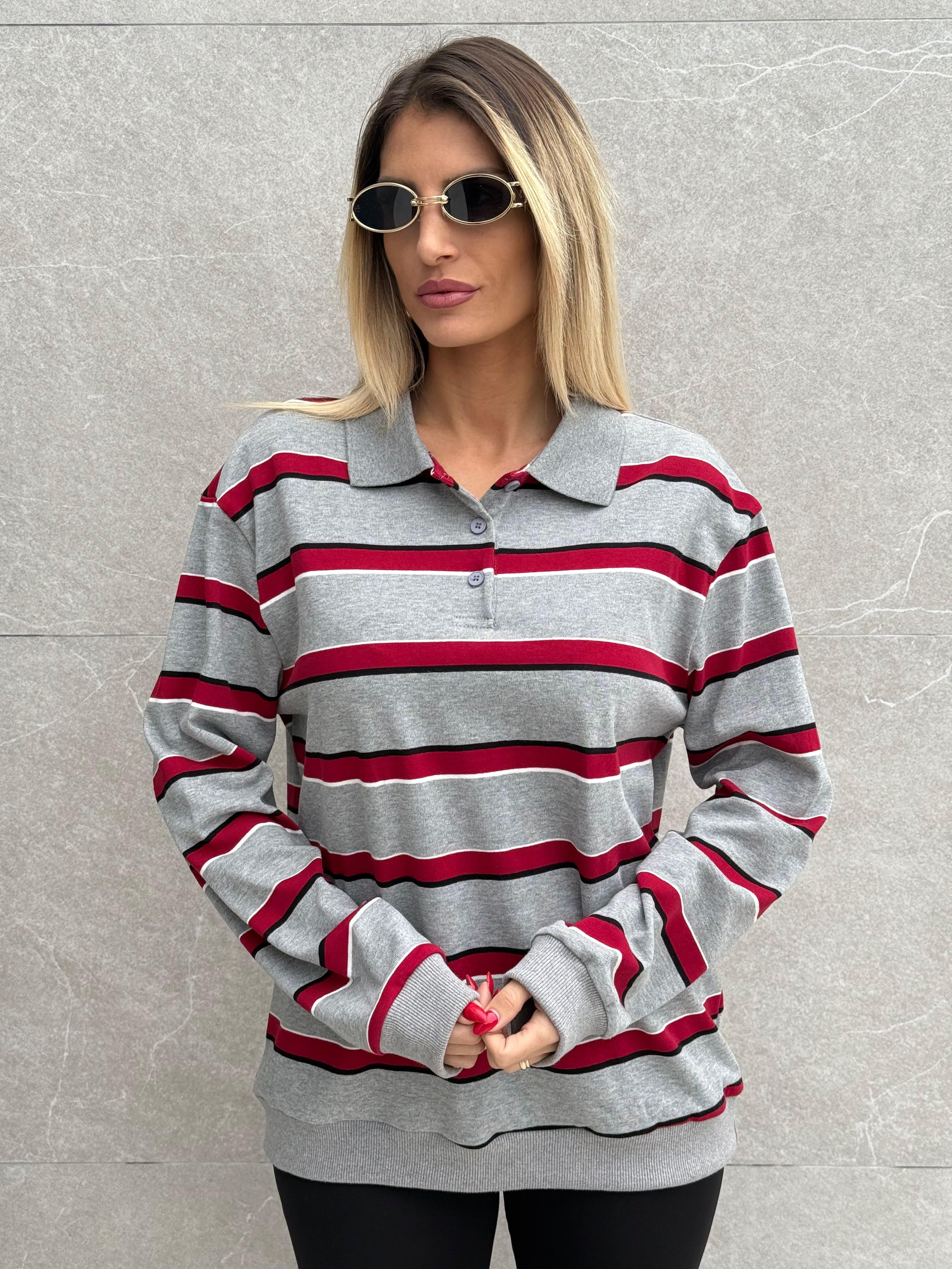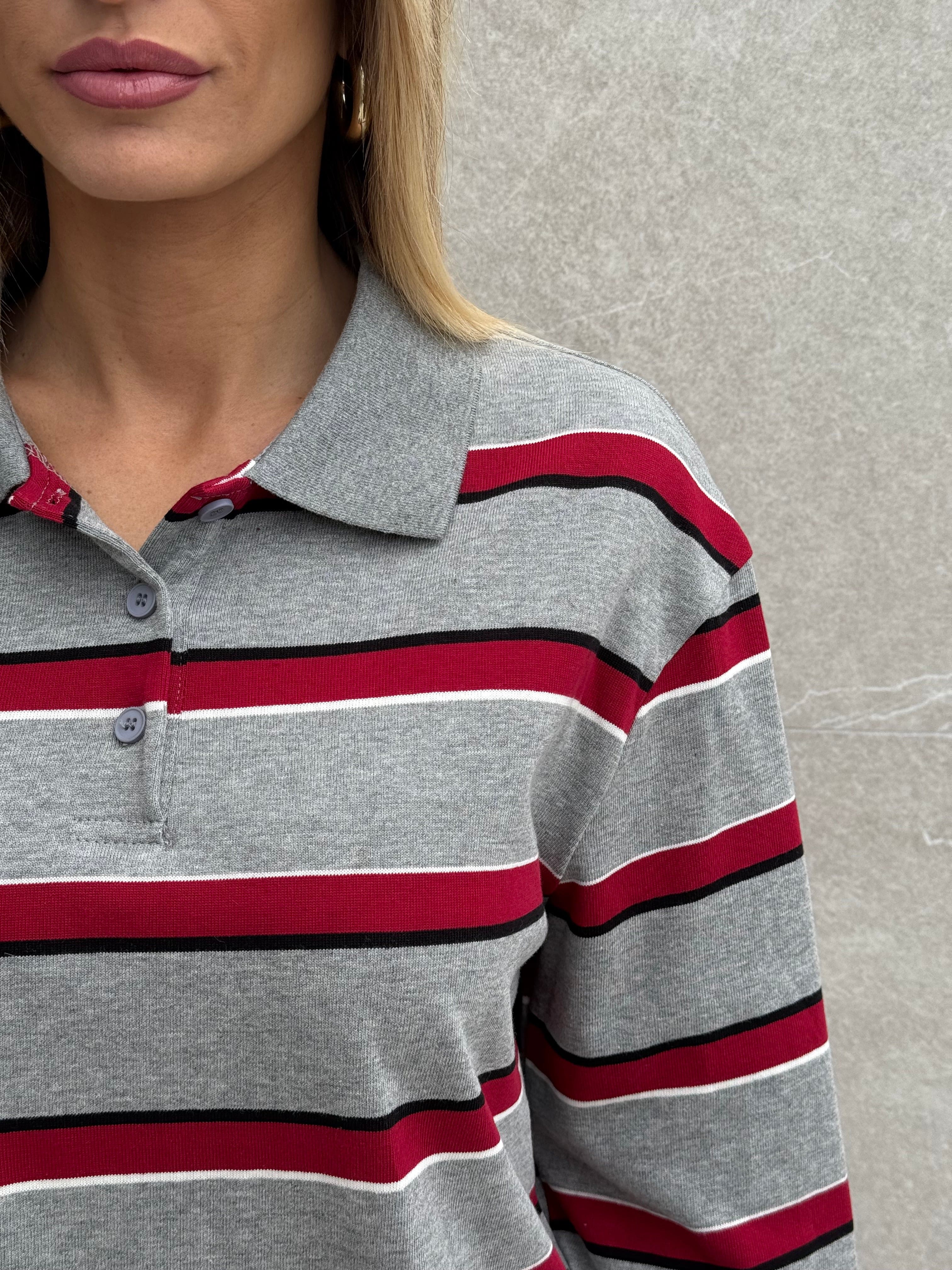 Polo con bottoni a manica lunga con elastico sui polsini e sul fondo.