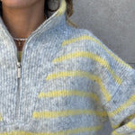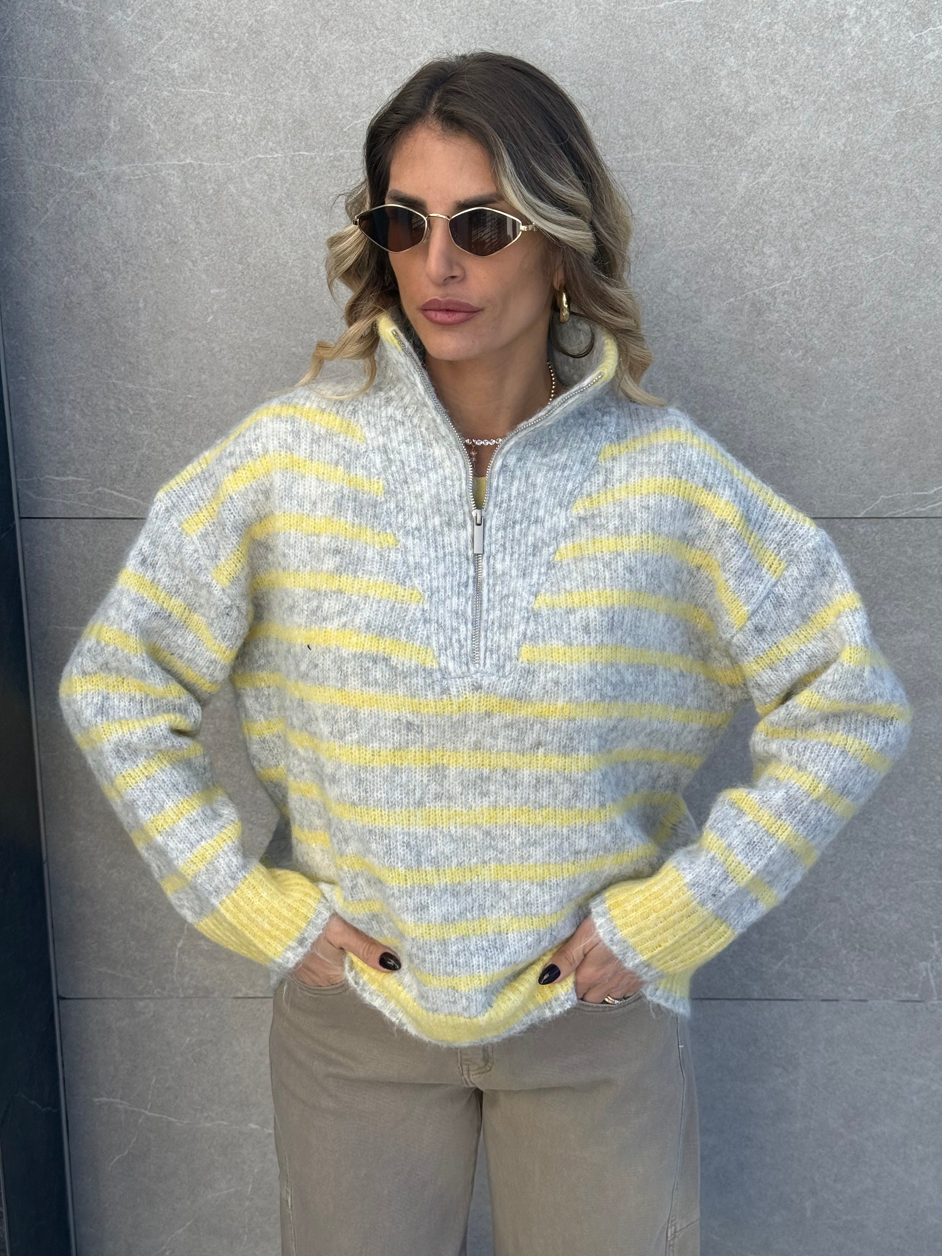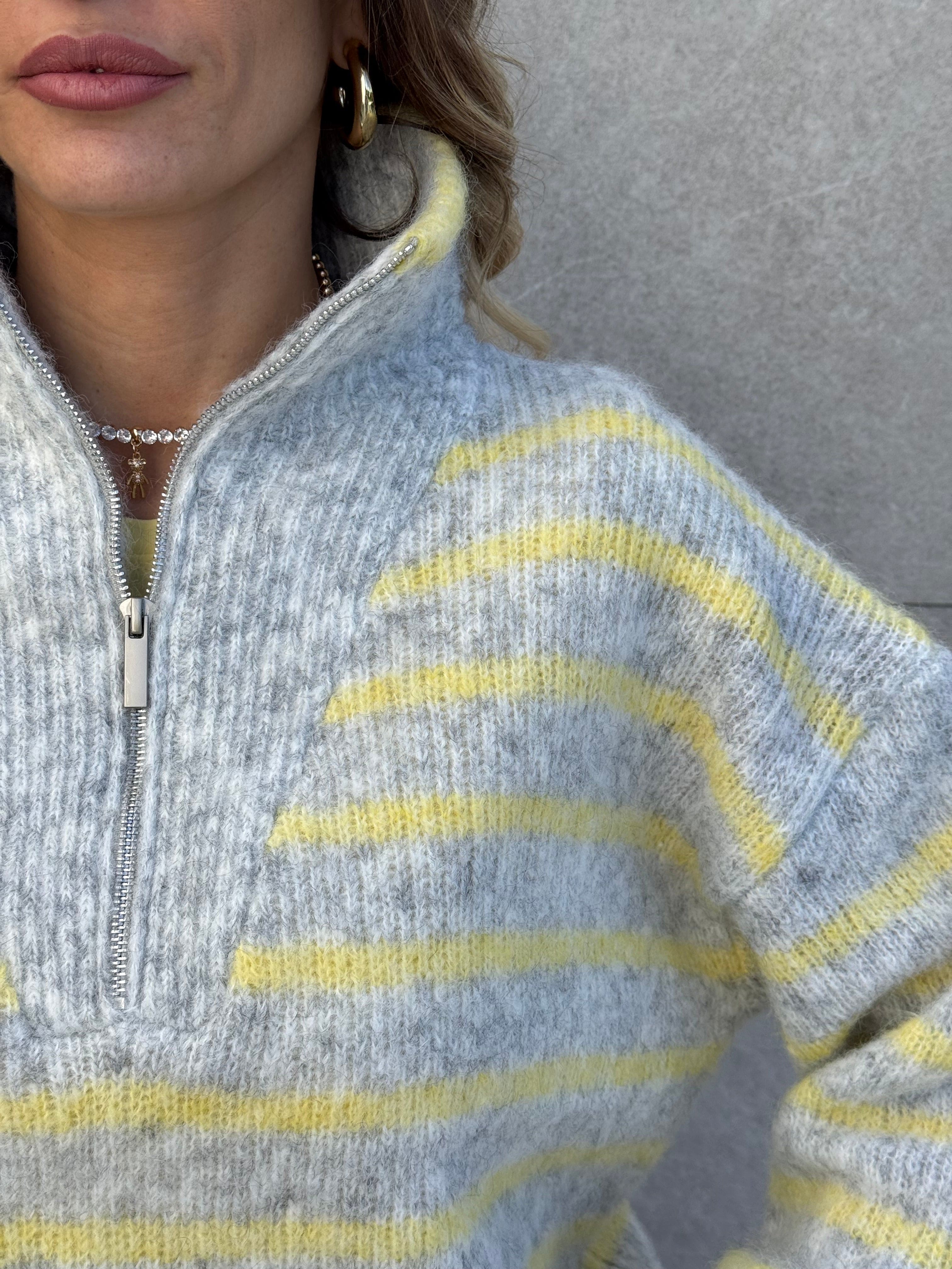 Pull zyp a righe grigio e giallo