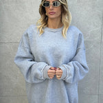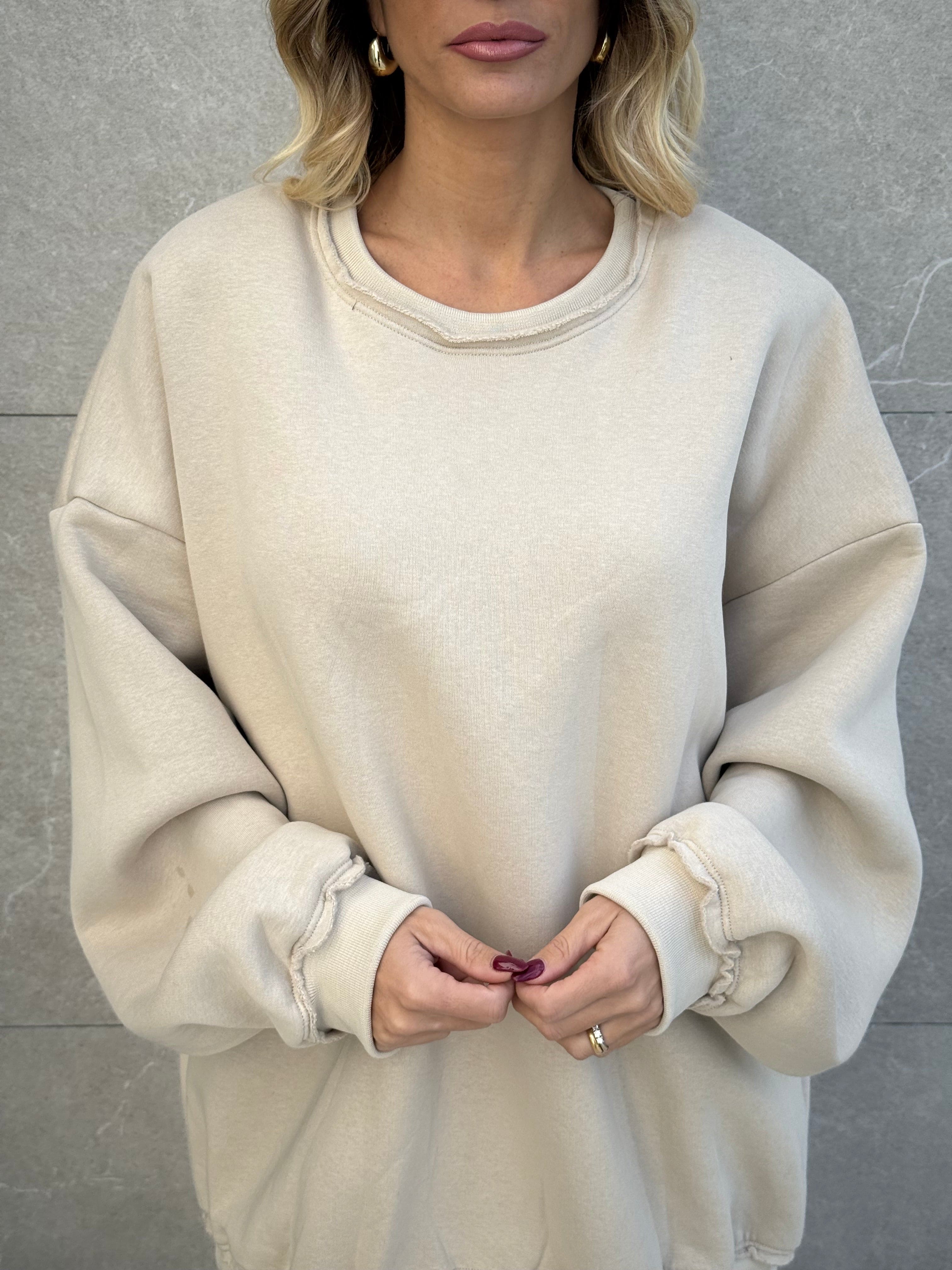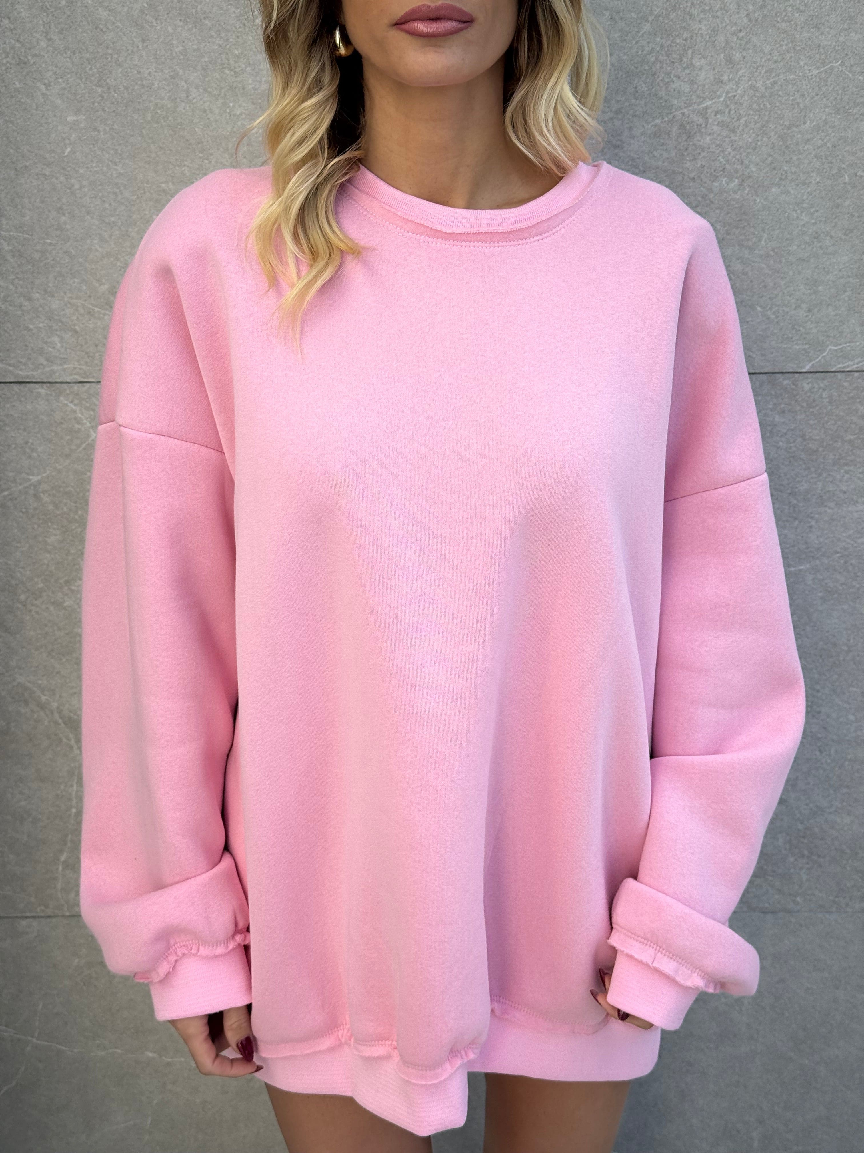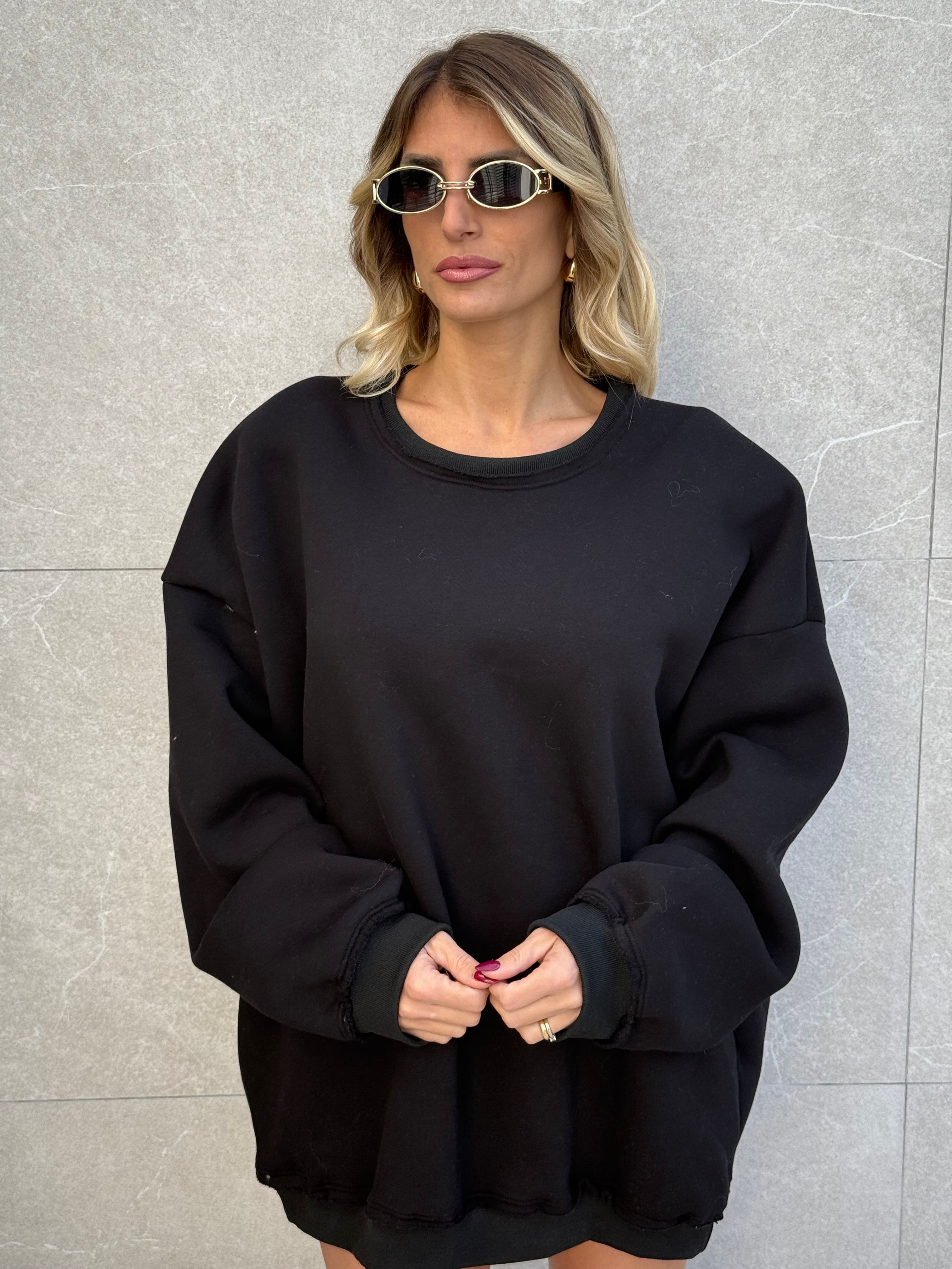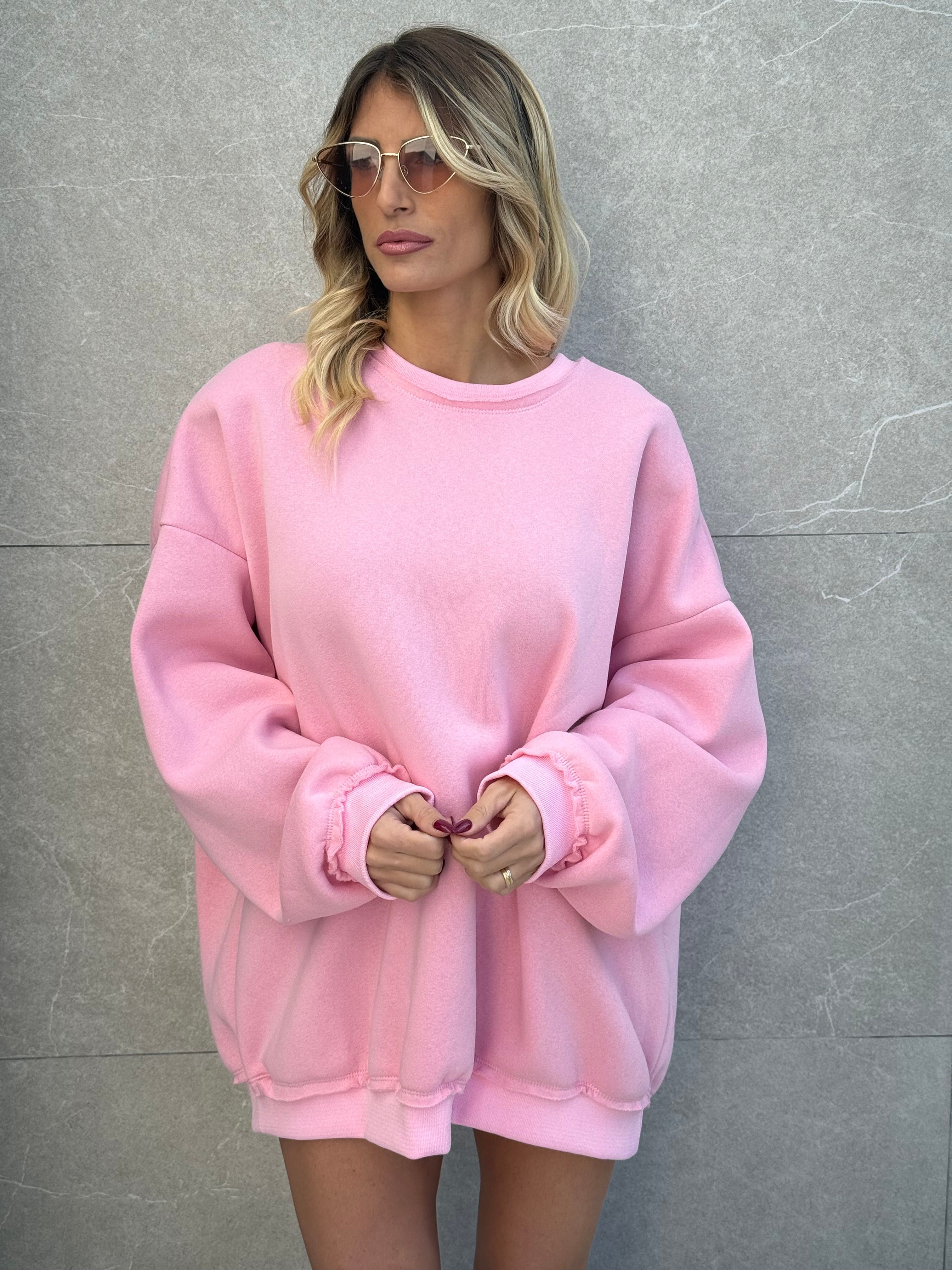 Felpa over con plaid interno, spallina imbottita e dettagli a volant