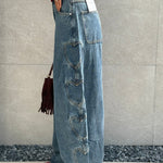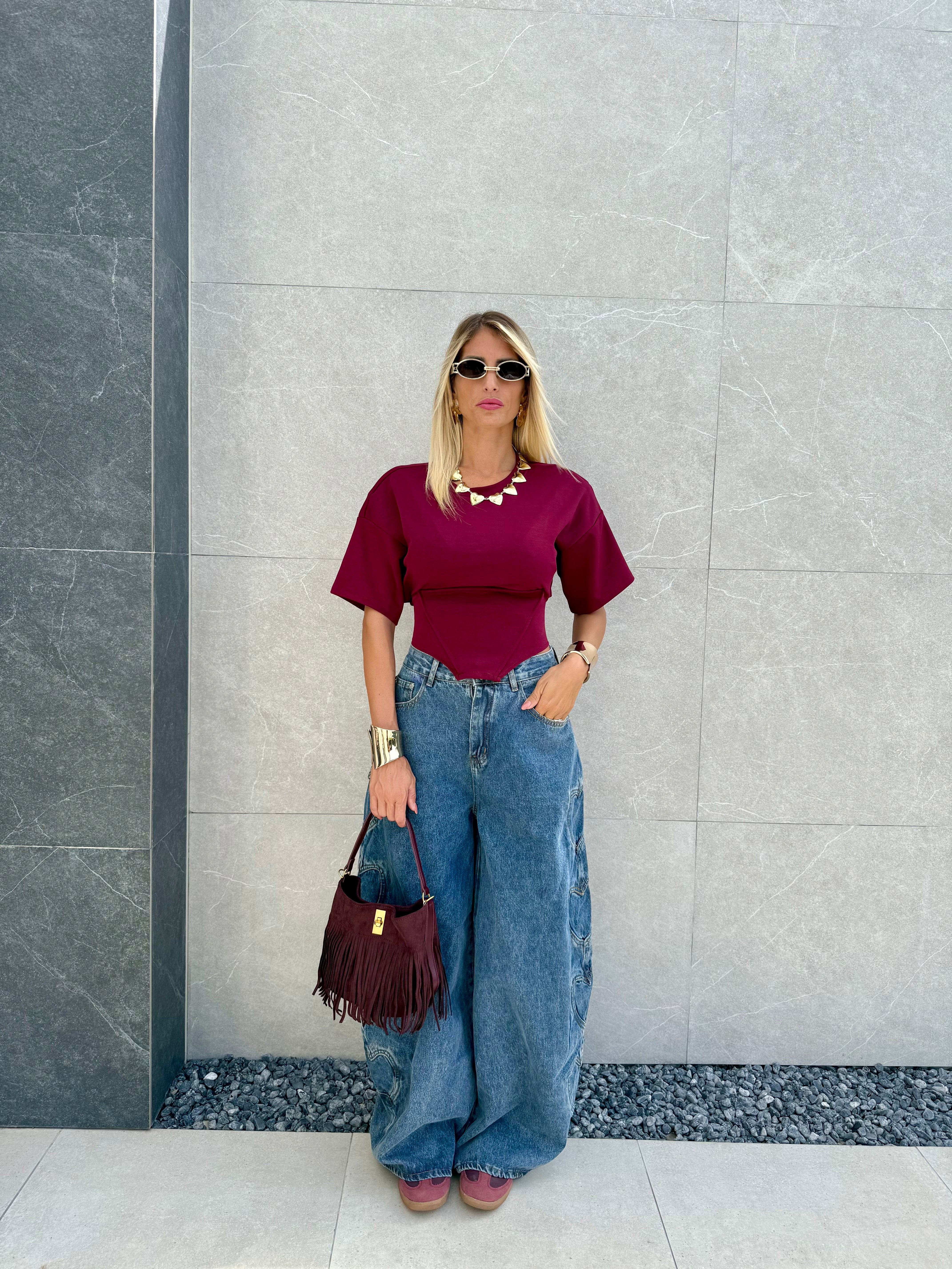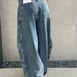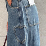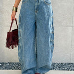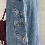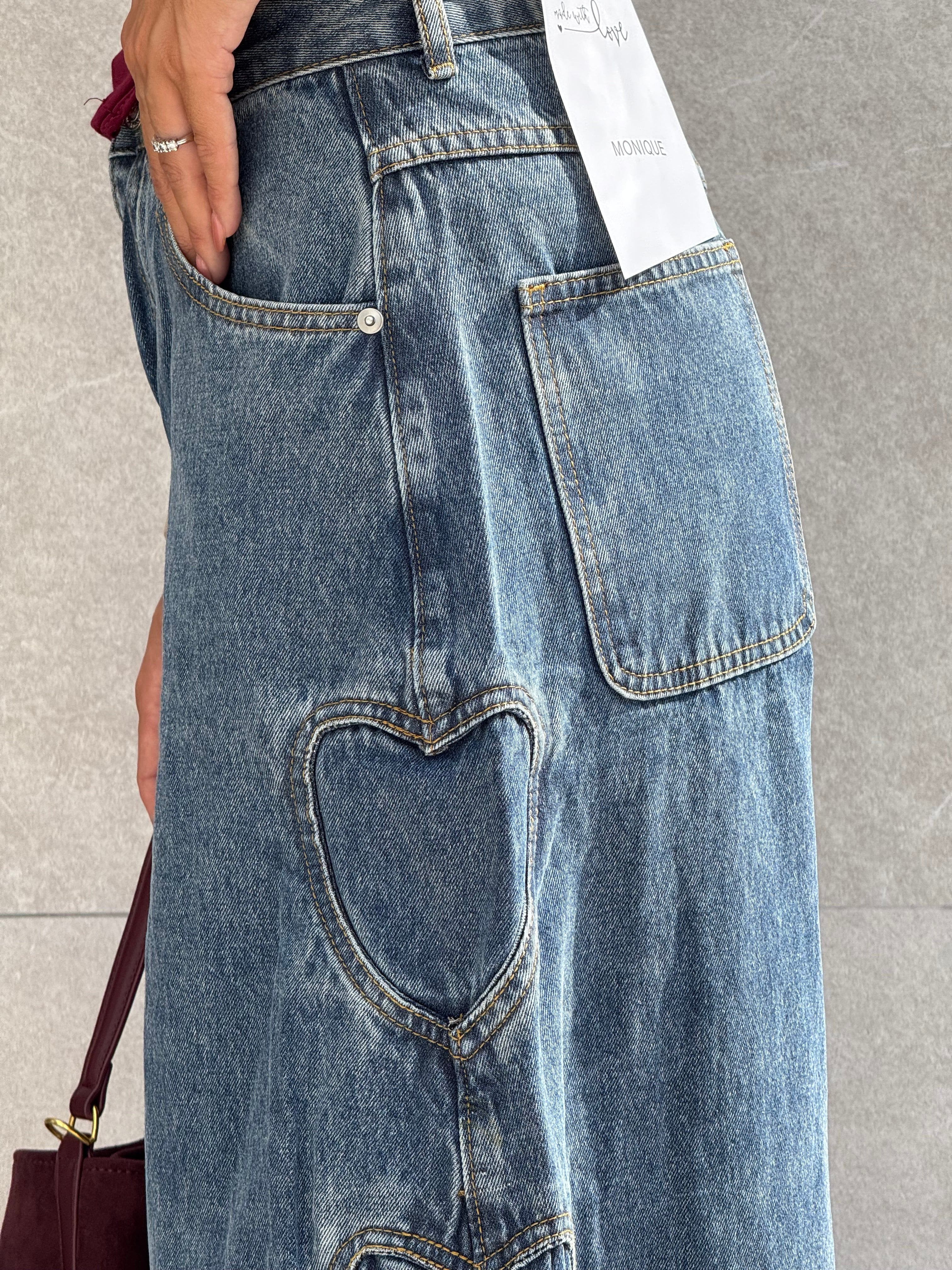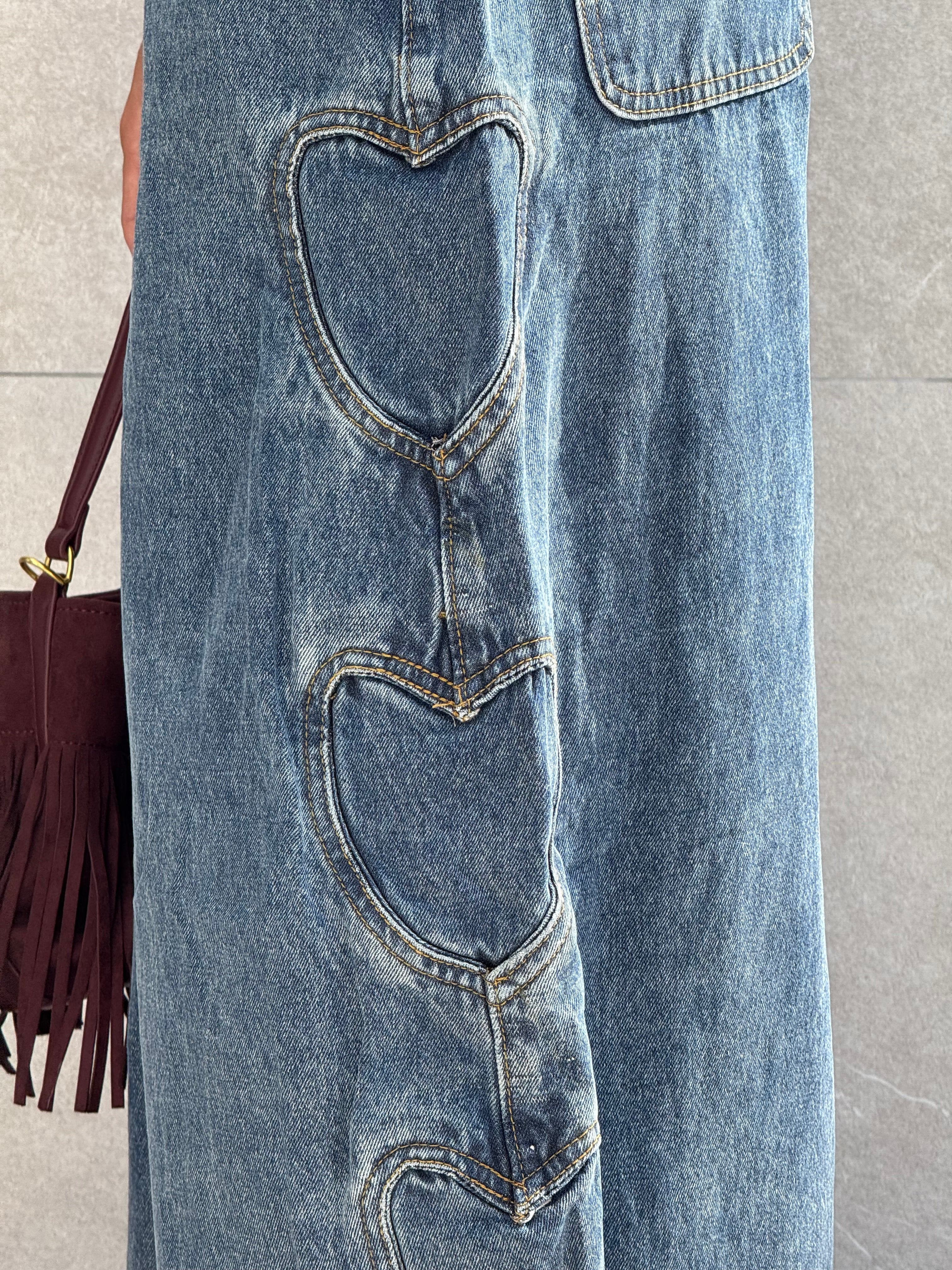Jeans baggy premium quality con dettaglio cuori in rilievo sul laterale .