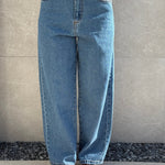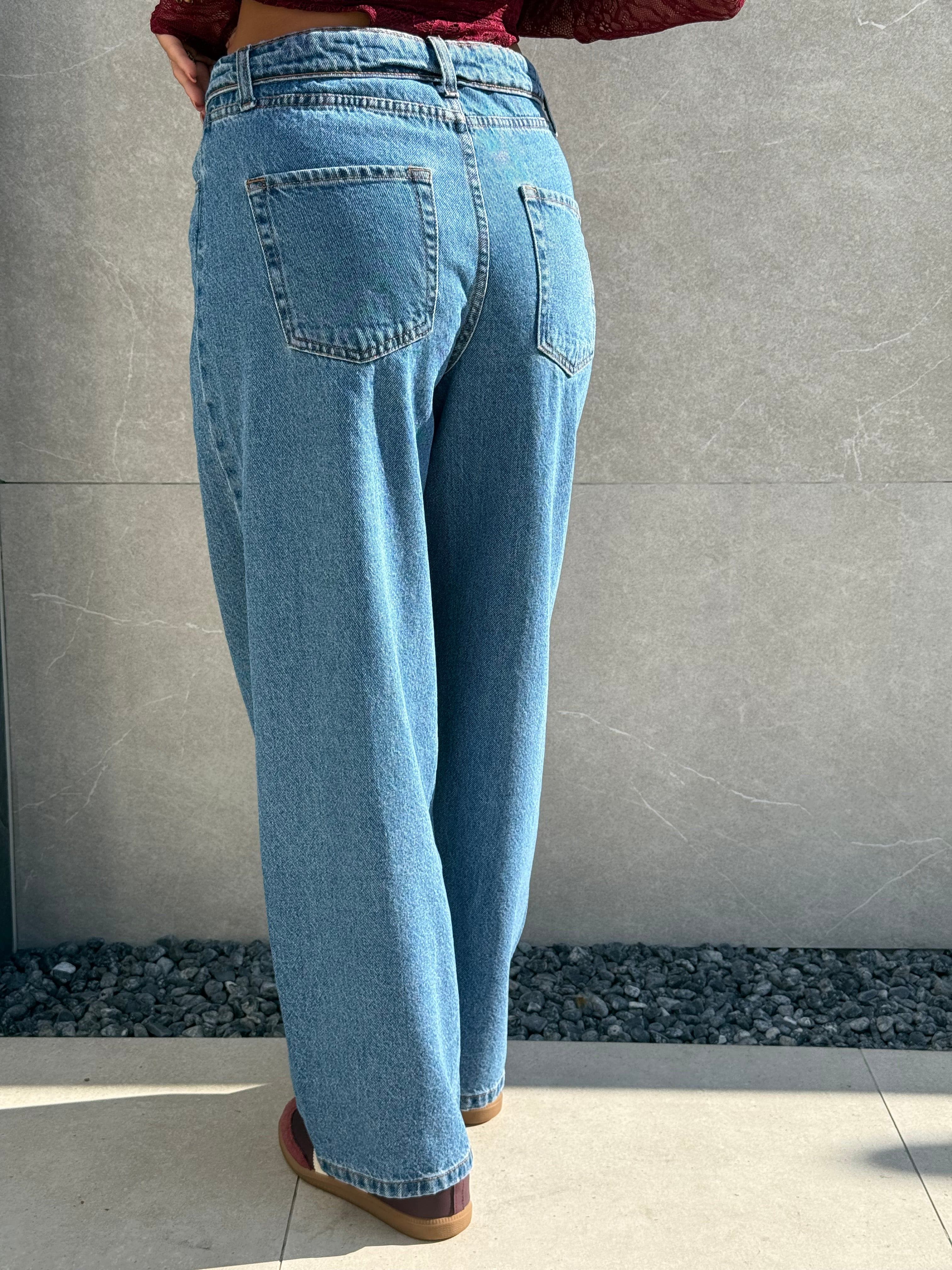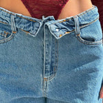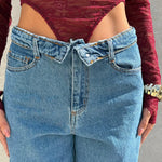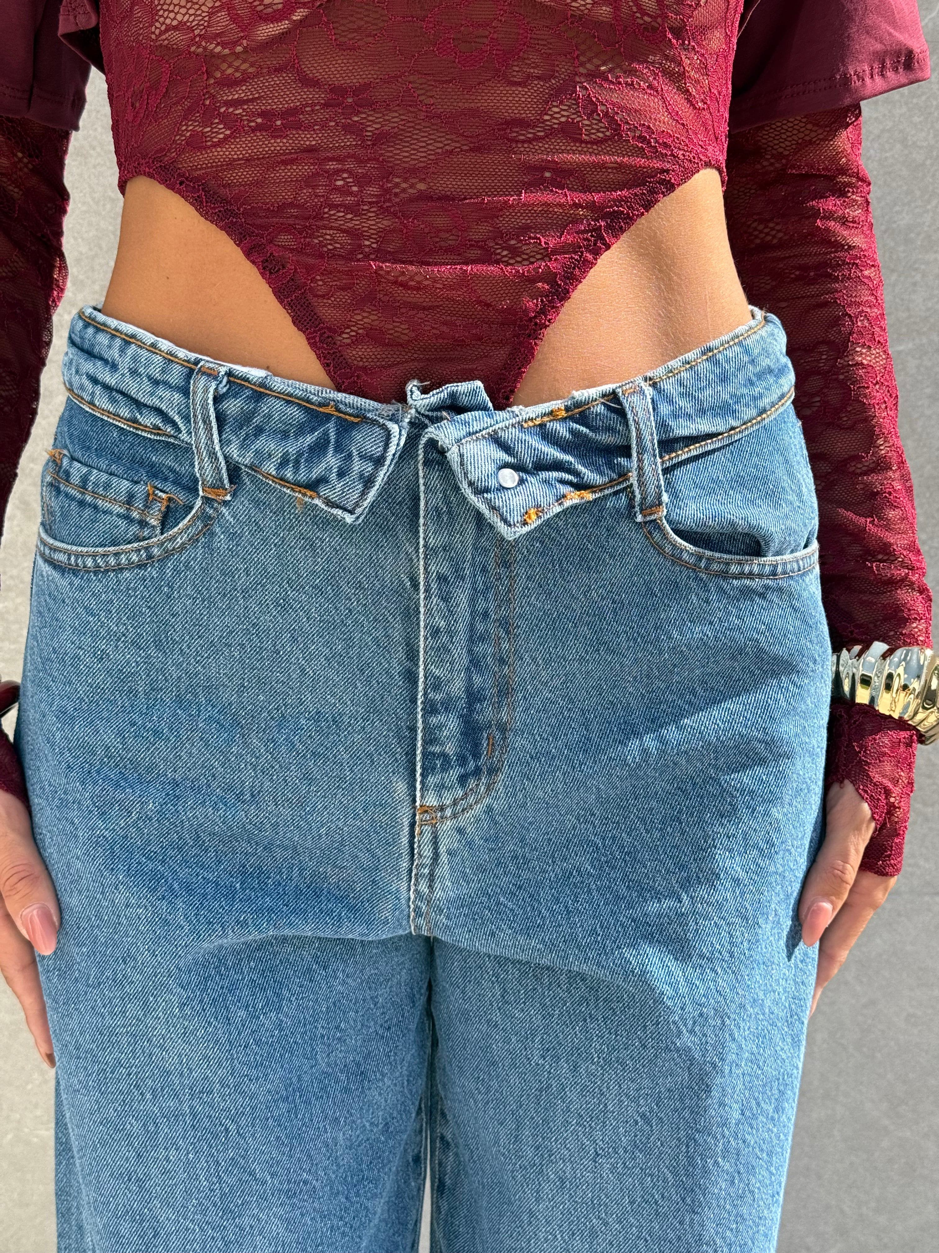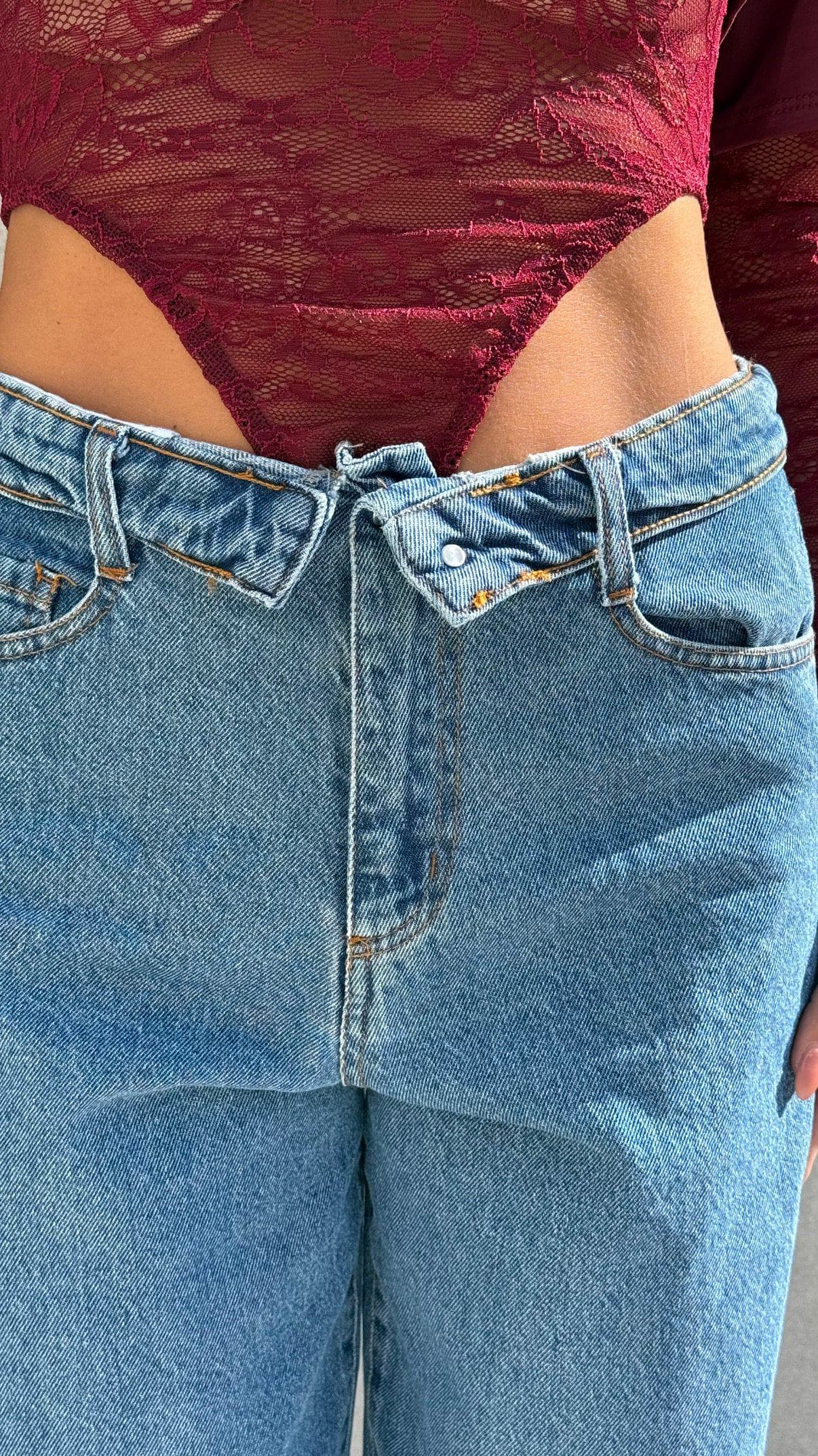 Jeans tela fissa con risvolto sulla vita.