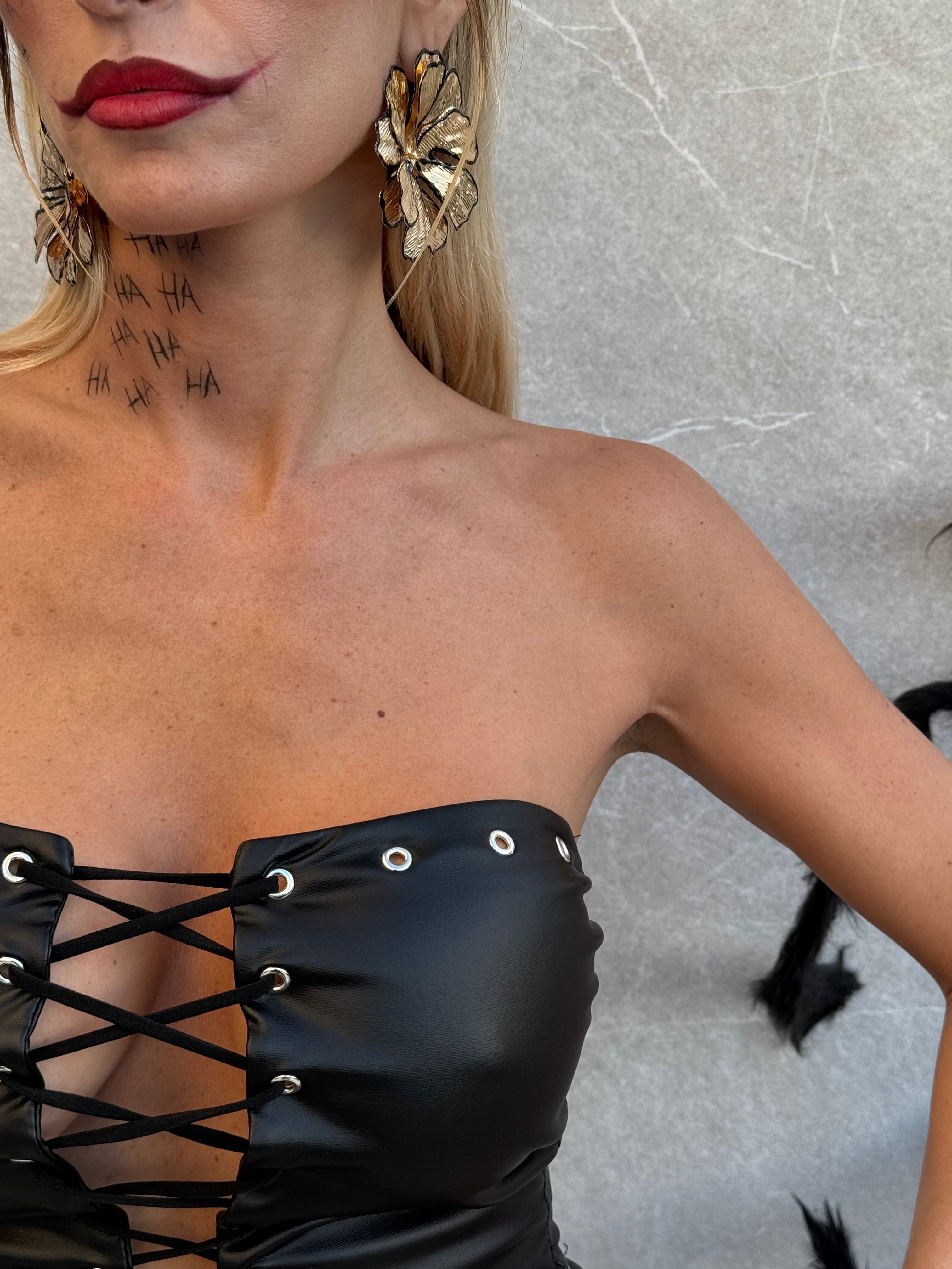 Top ecopelle con stringhe.