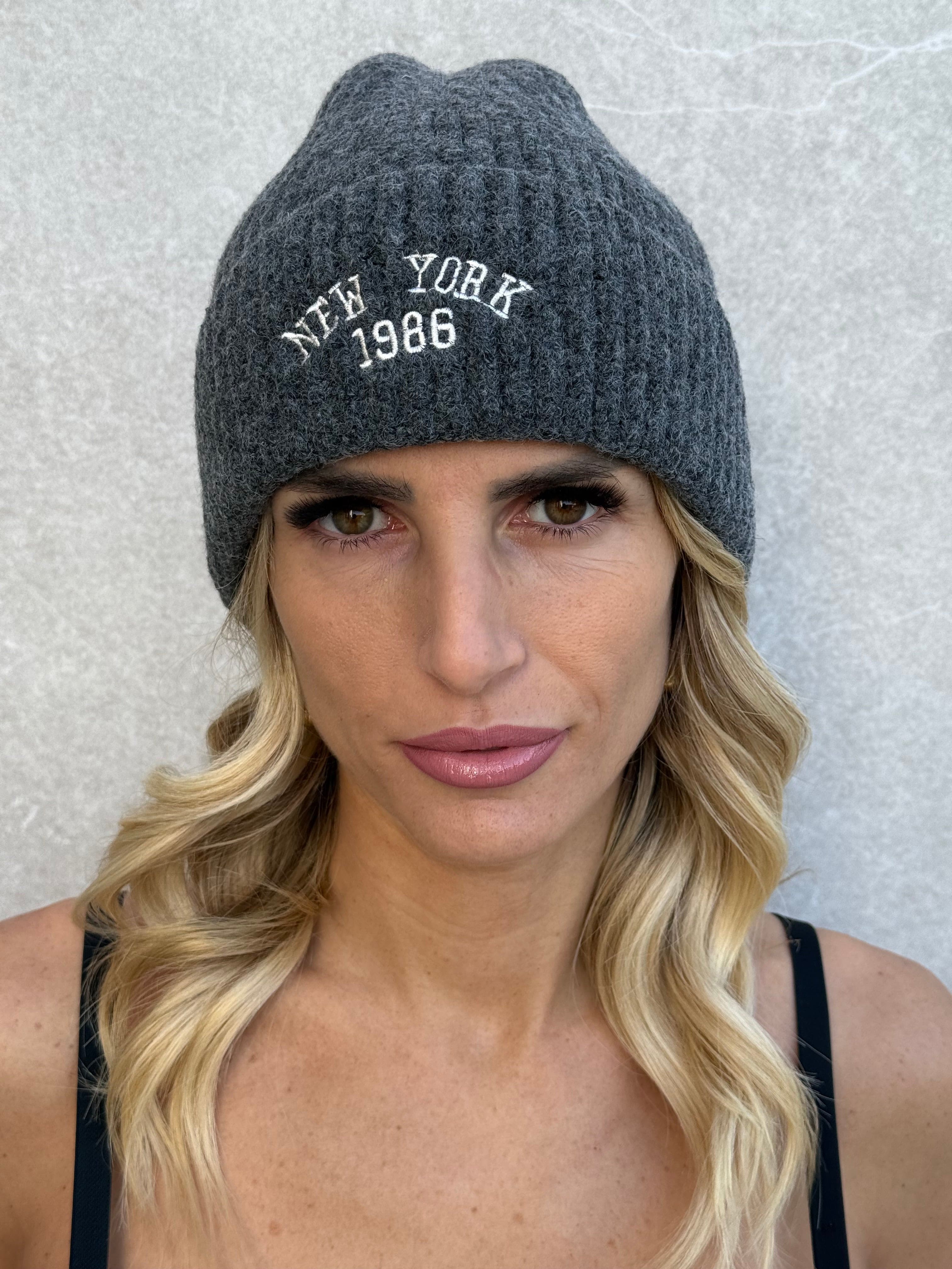 Berretto in lana con scritta New York