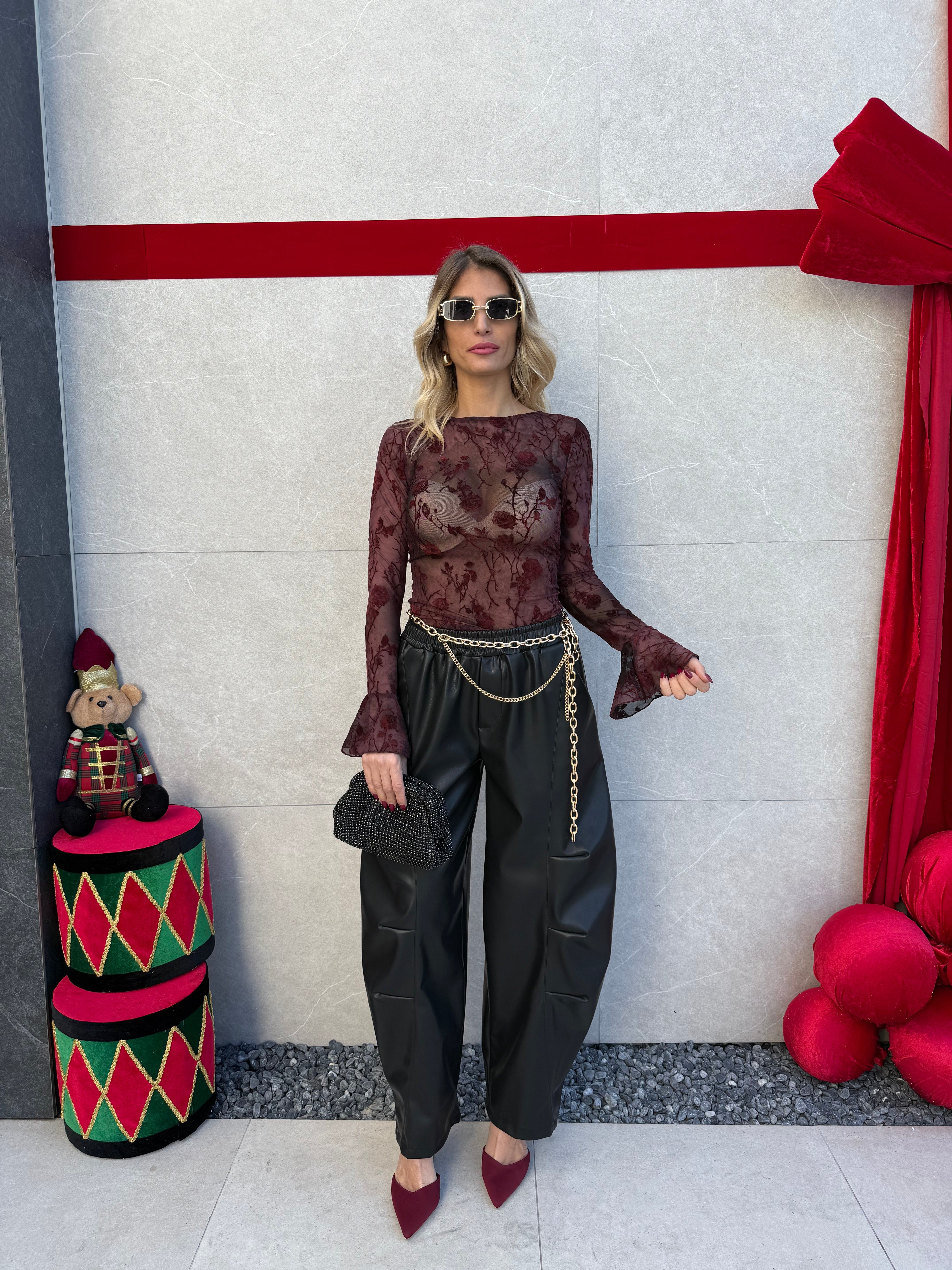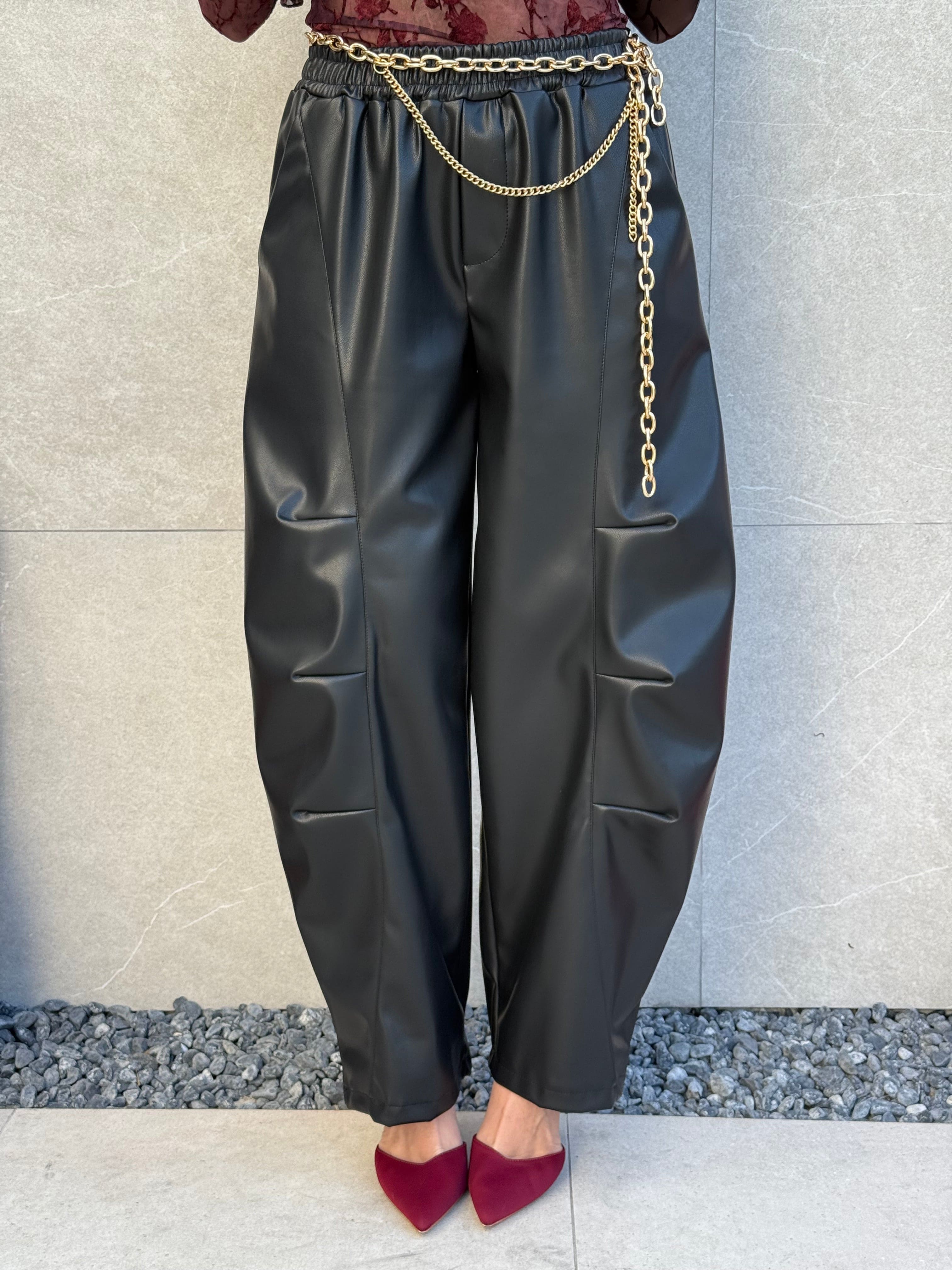 Pantalone baggy ecopelle della Just West con elastico in vita