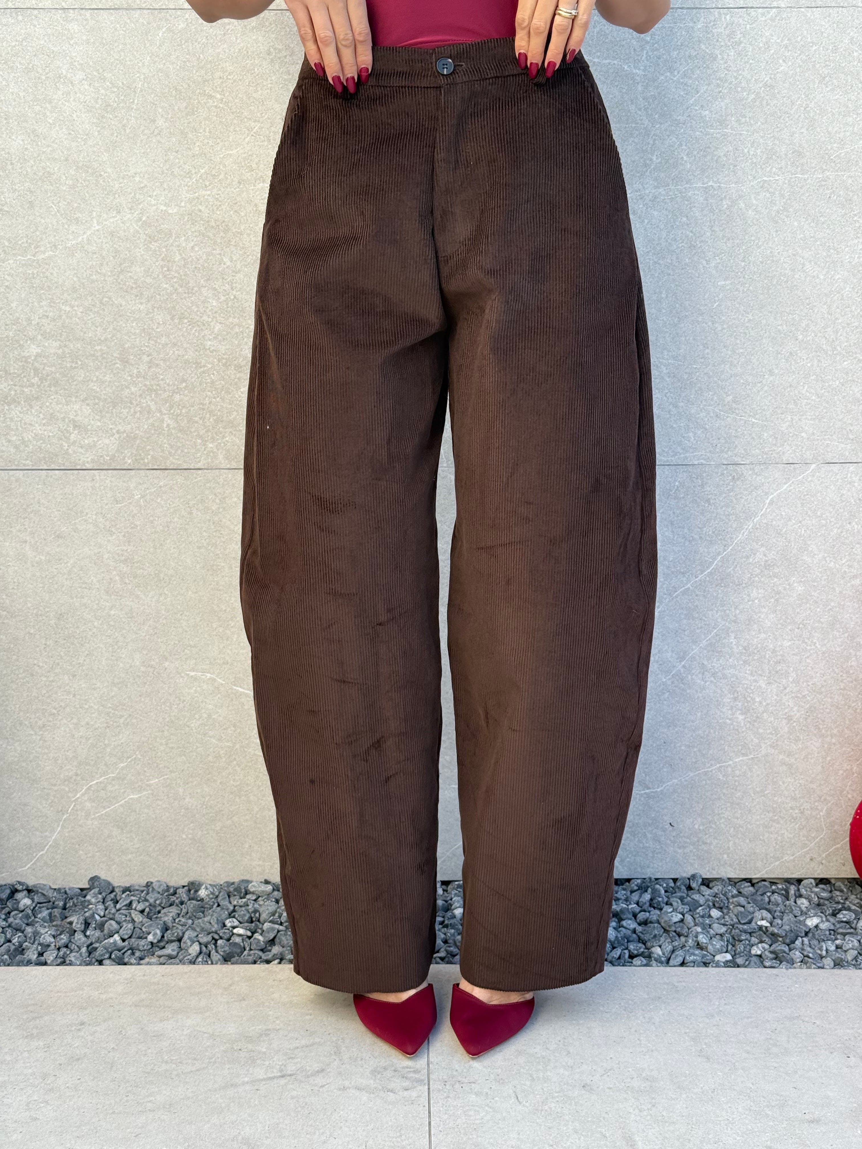 Pantalone in velluto a costine della Just West taglia unica con elastico in vita.
