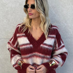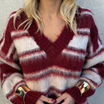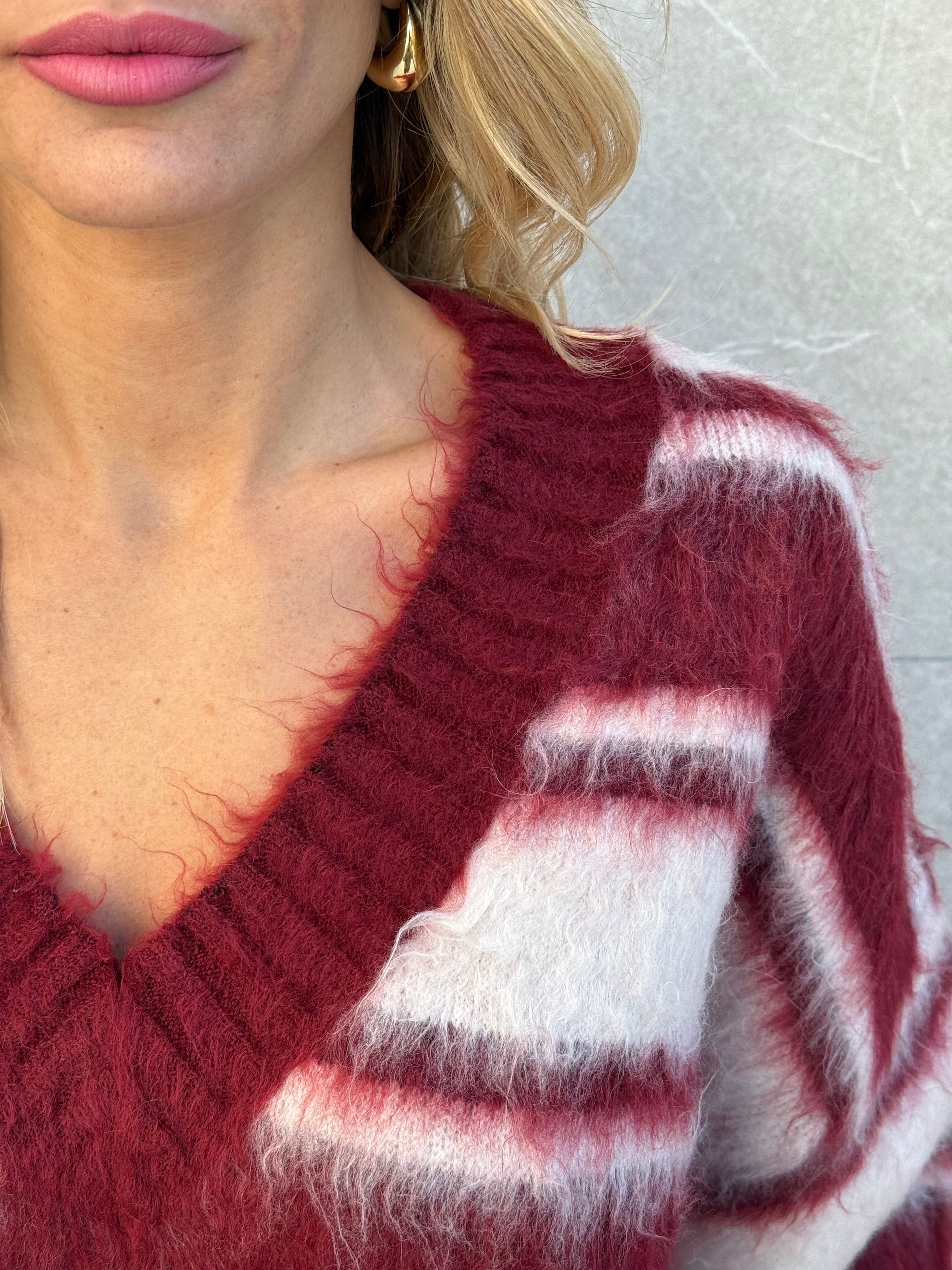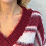 Pull in pelo con scollo a V e righe larghe.