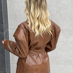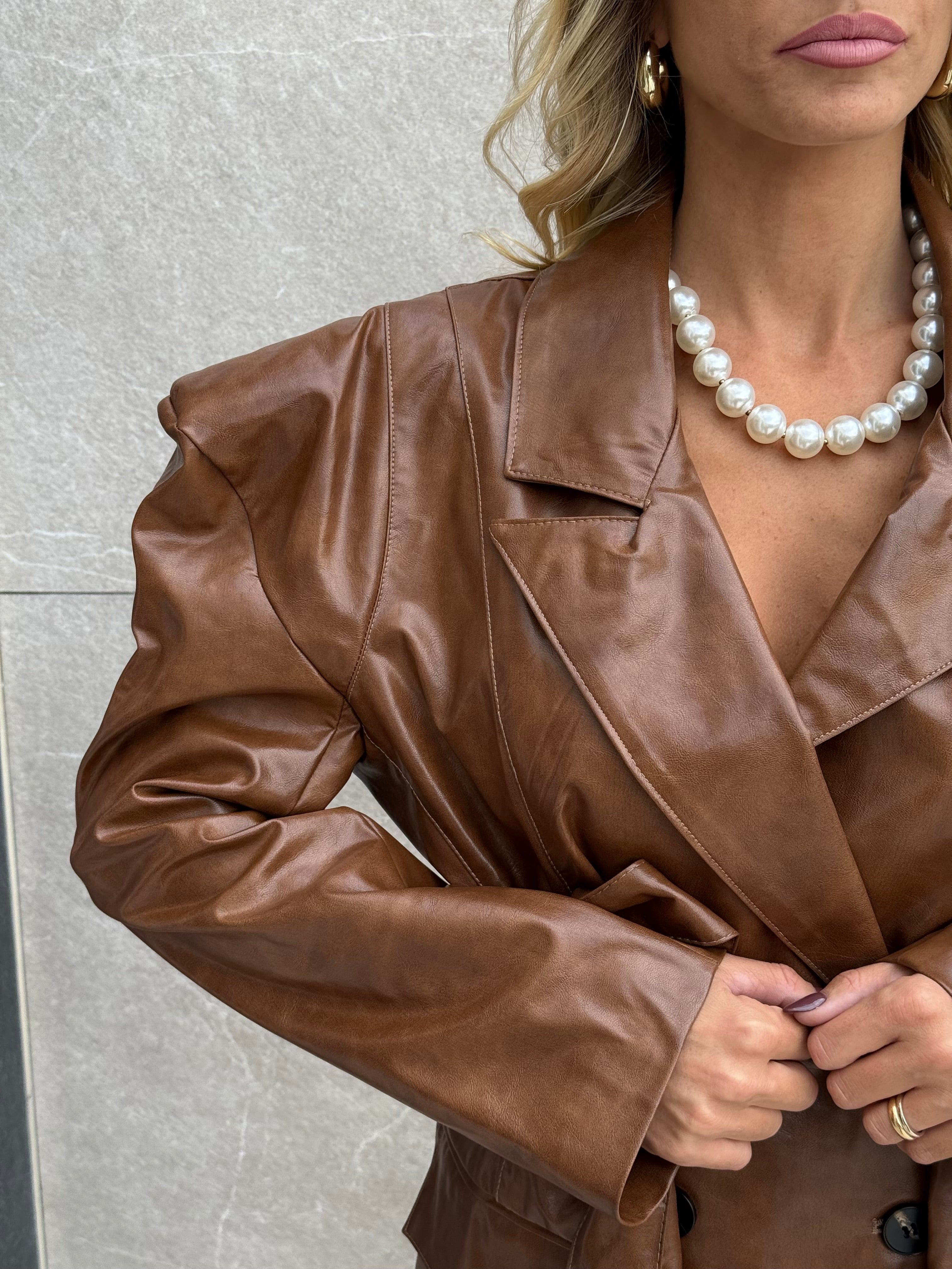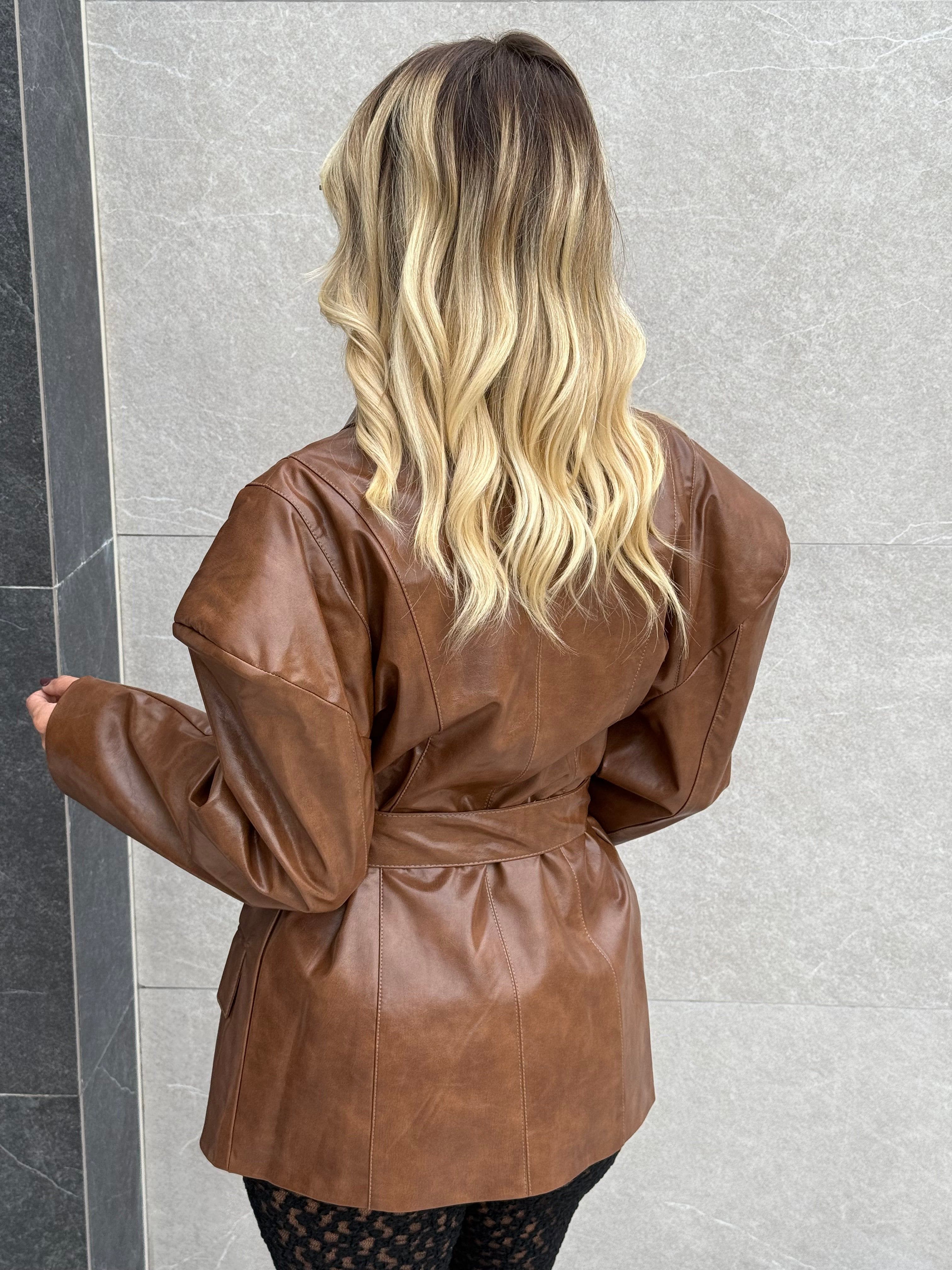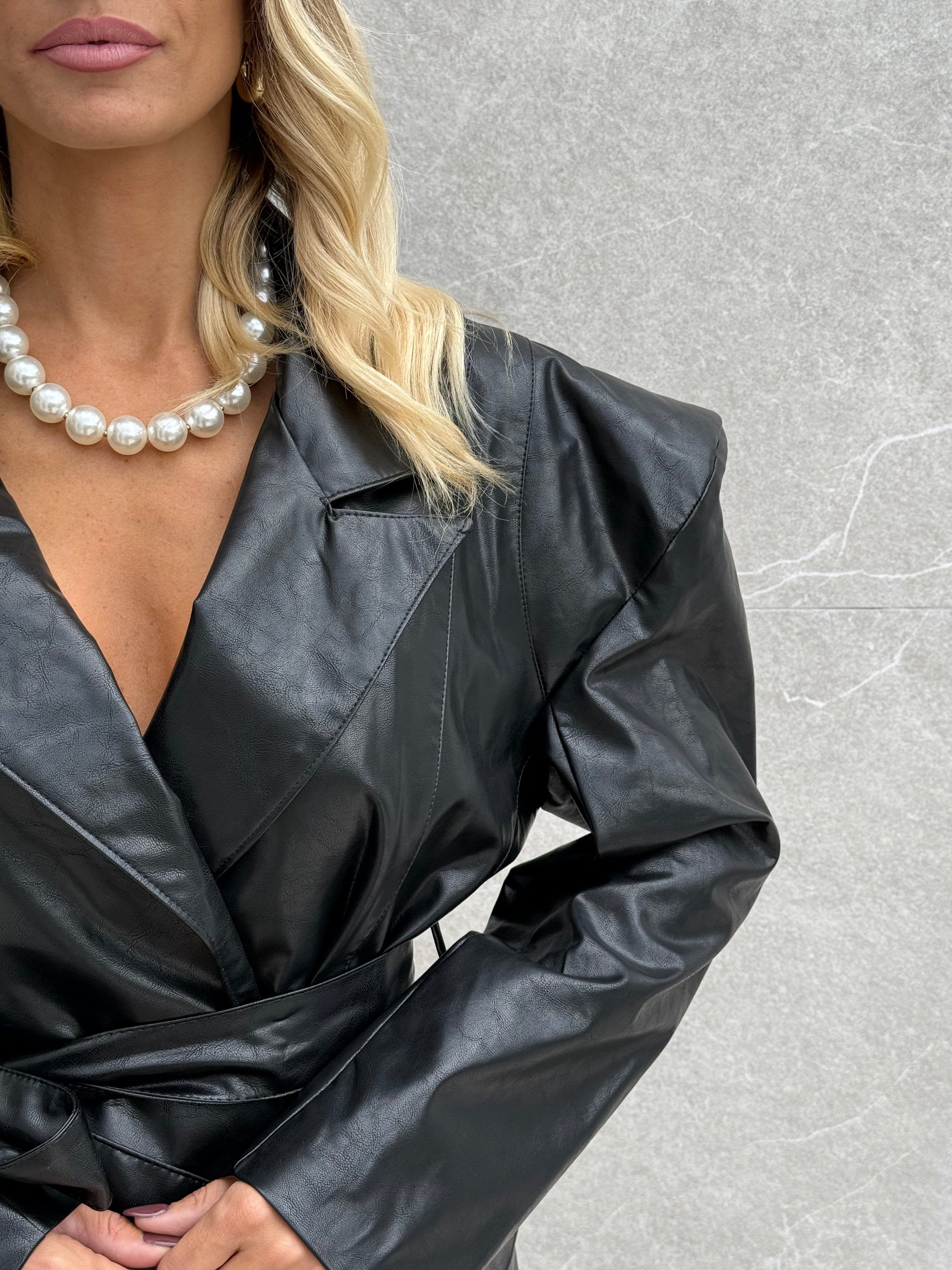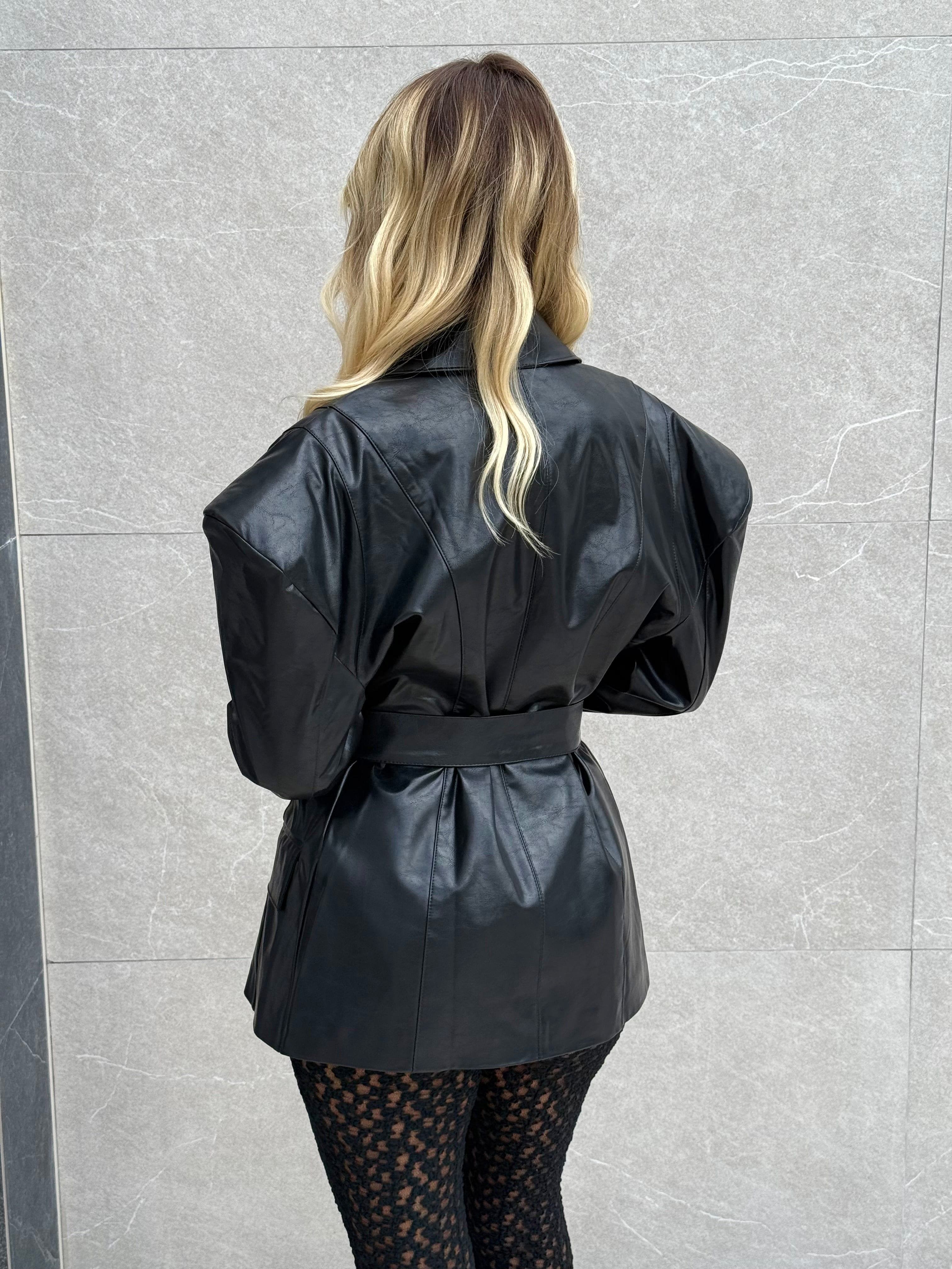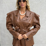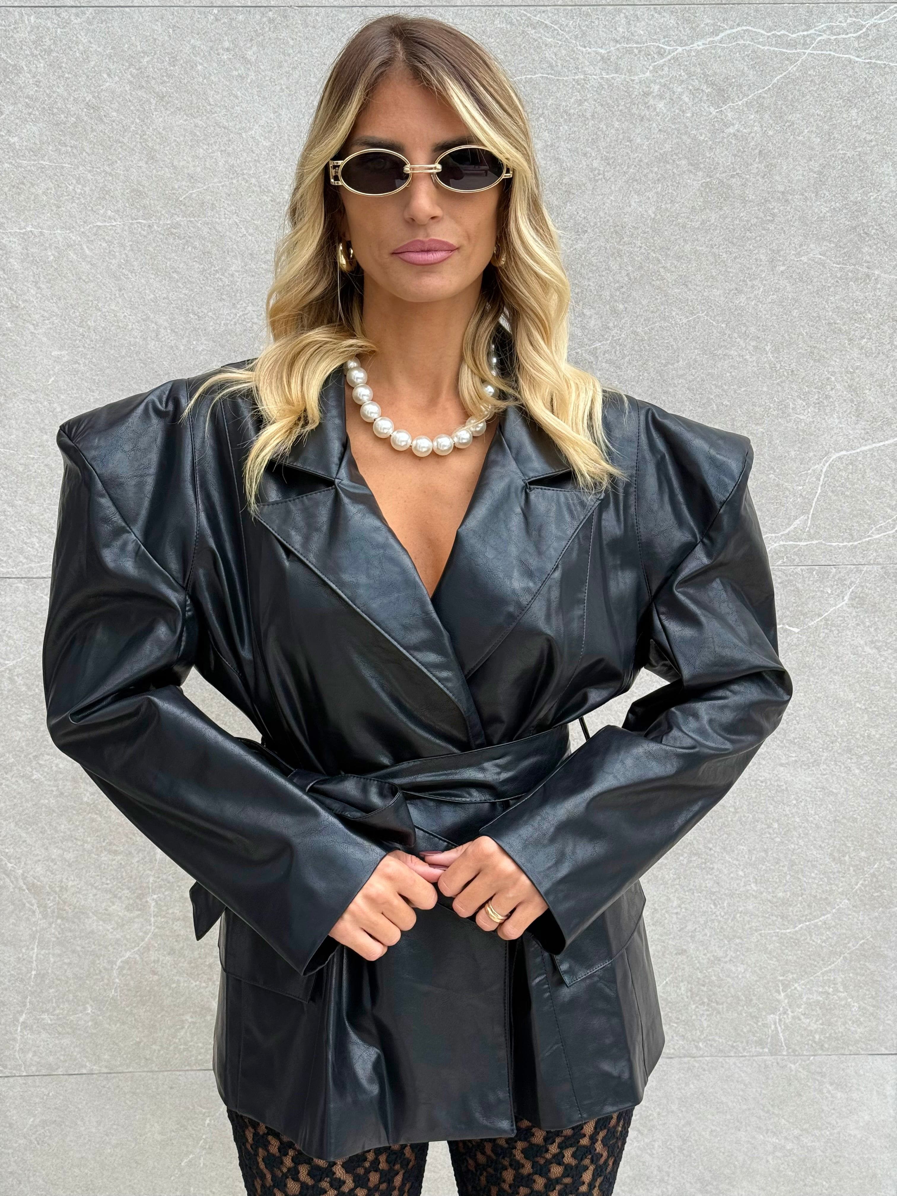 Blazer in ecopelle doppio petto della Just West con spallina imbottita e scesa e cintura inclusa.