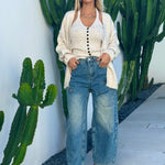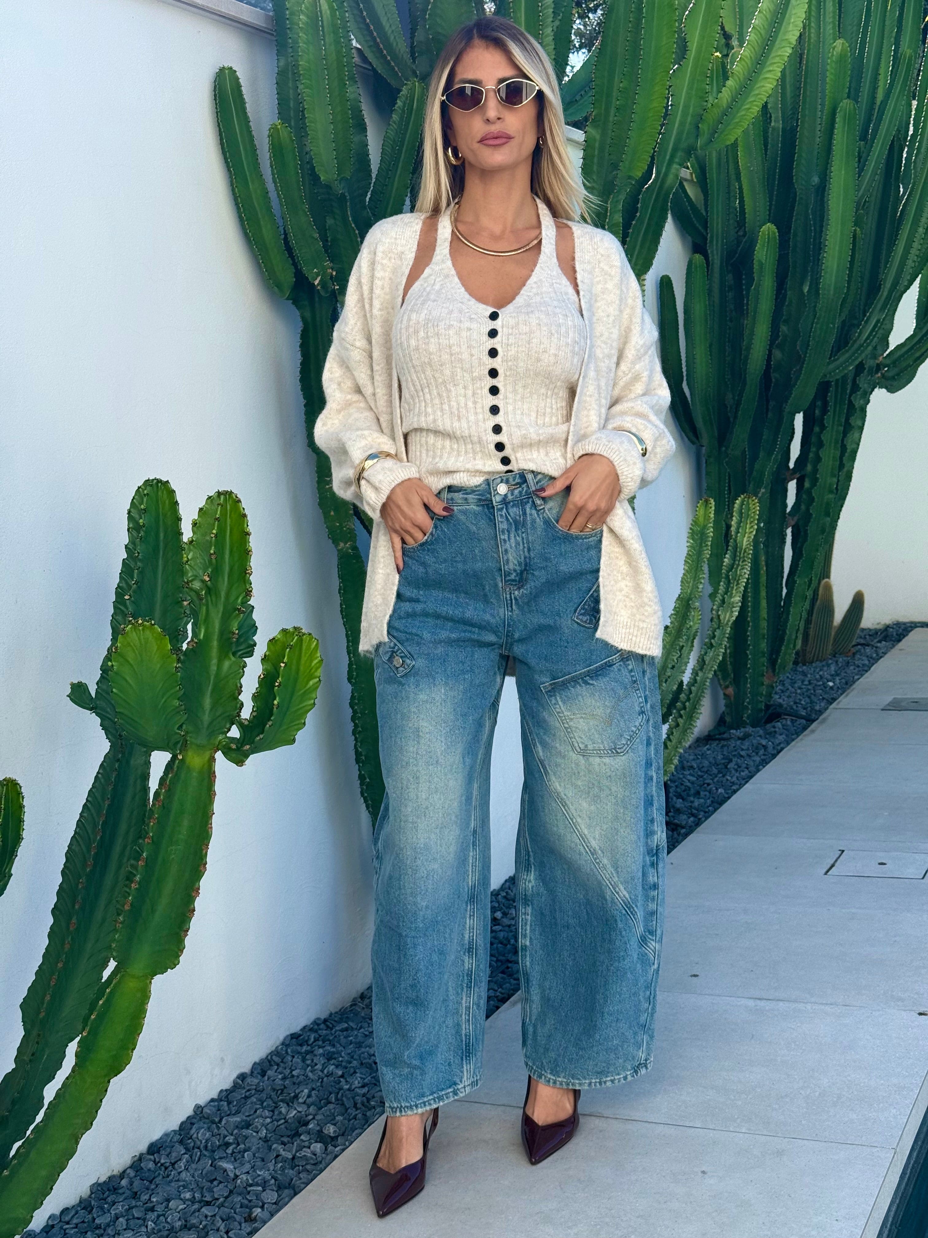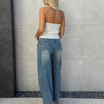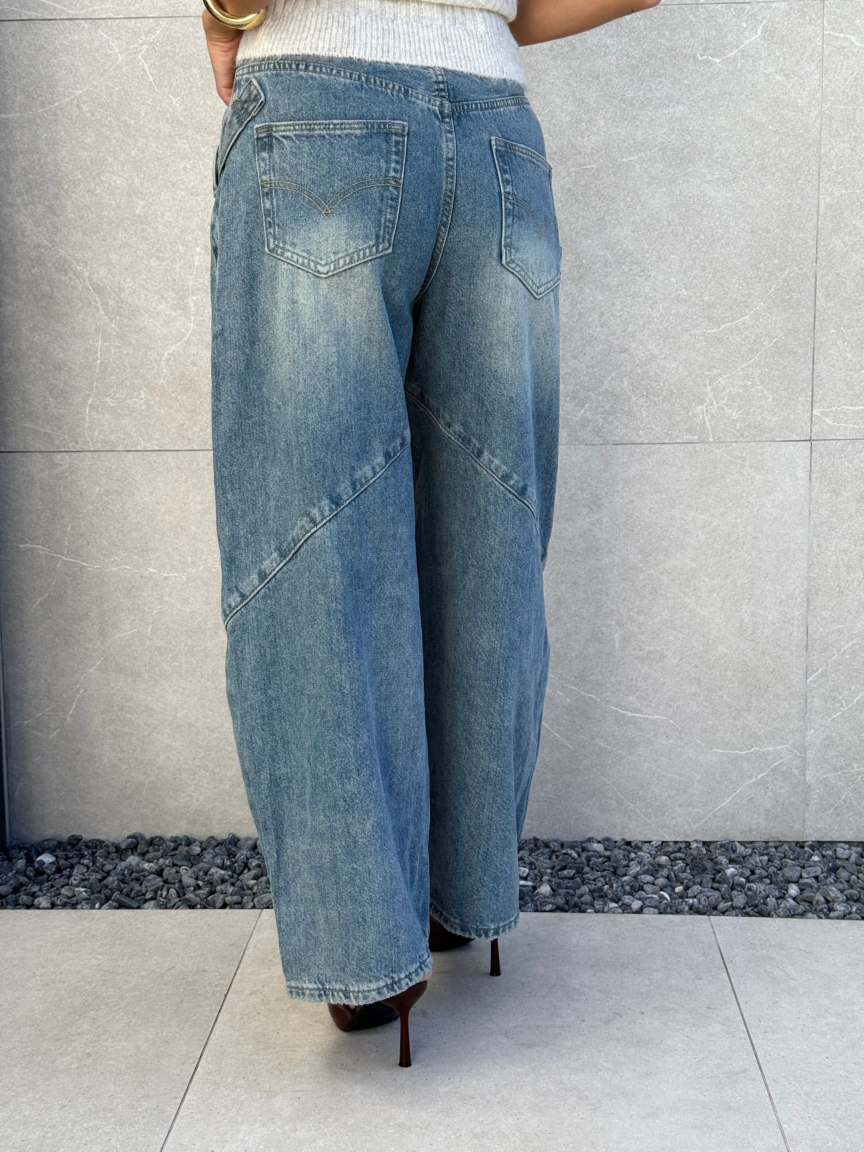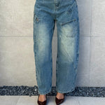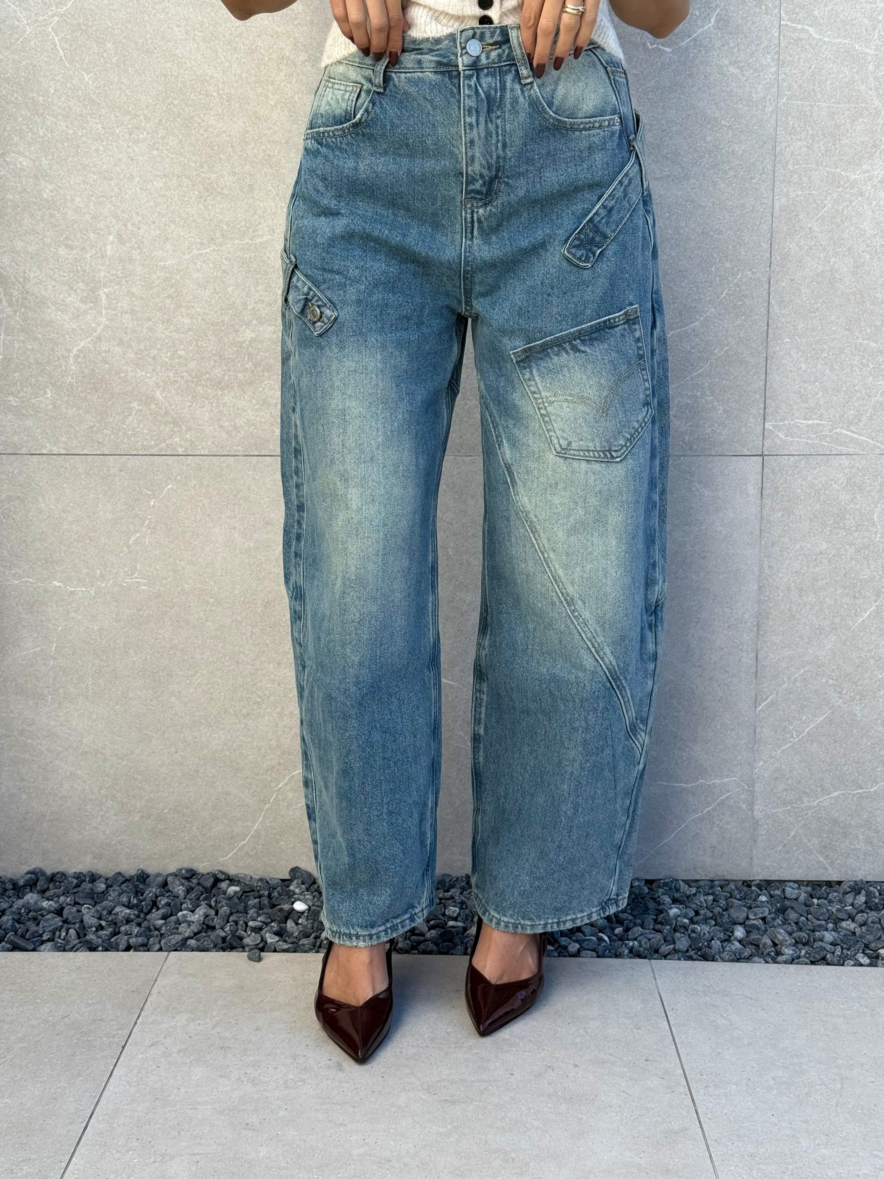 Jeans premium quality con tasca e inserti di jeans sul davanti.