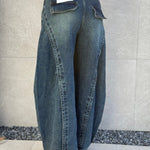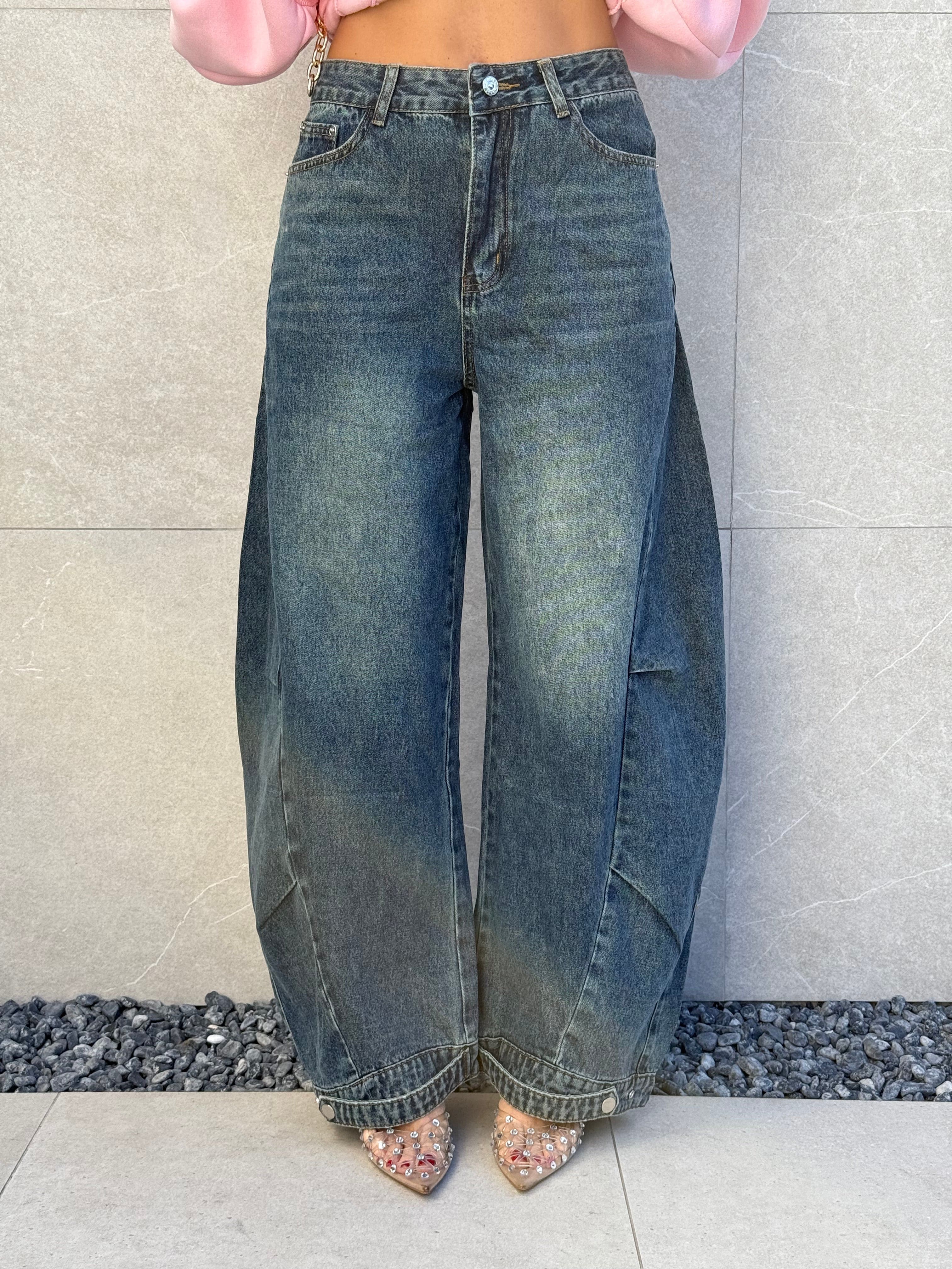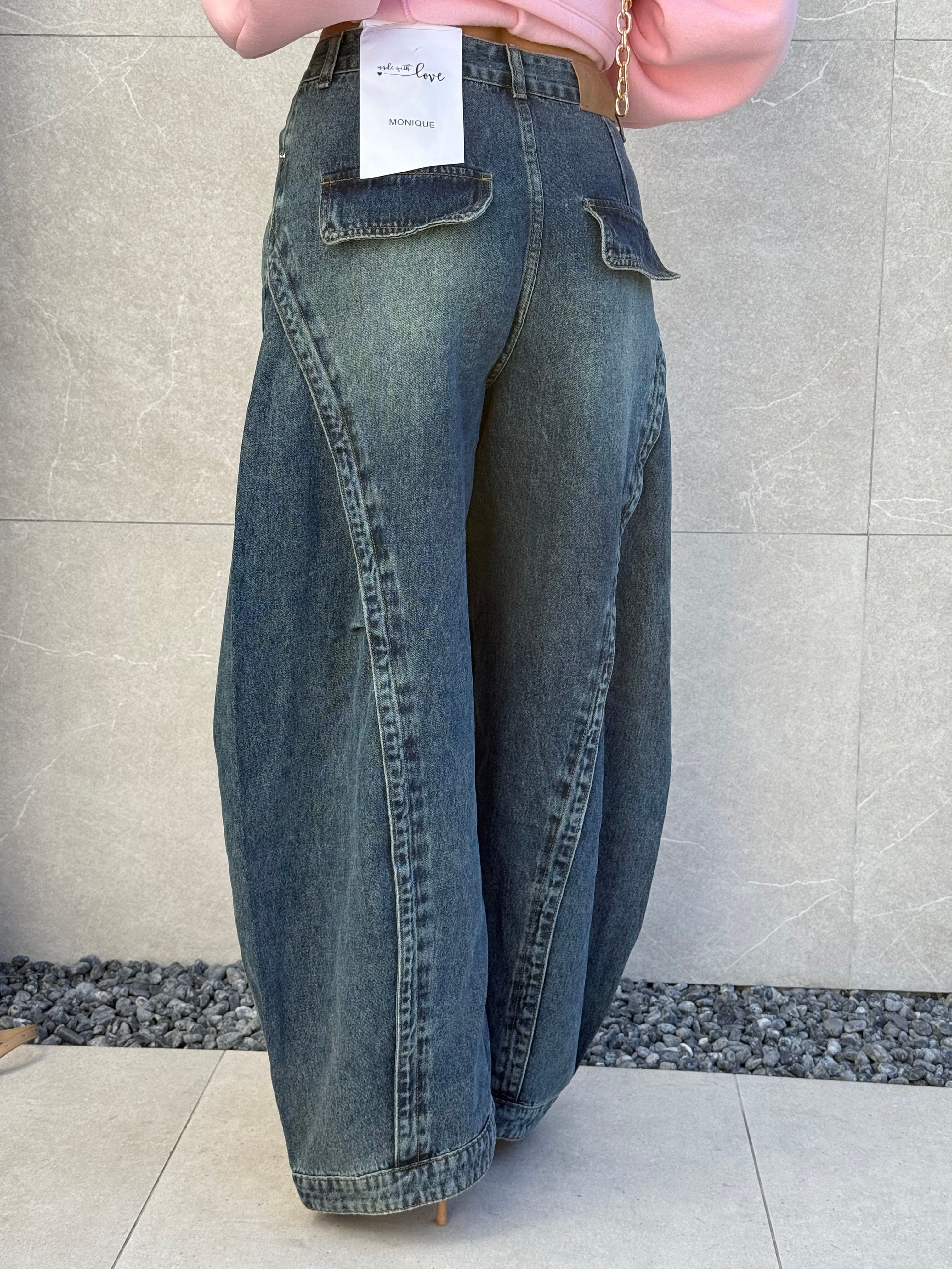 Jeans premium quality con cinture sul fondo e tasche finte sul retro.