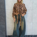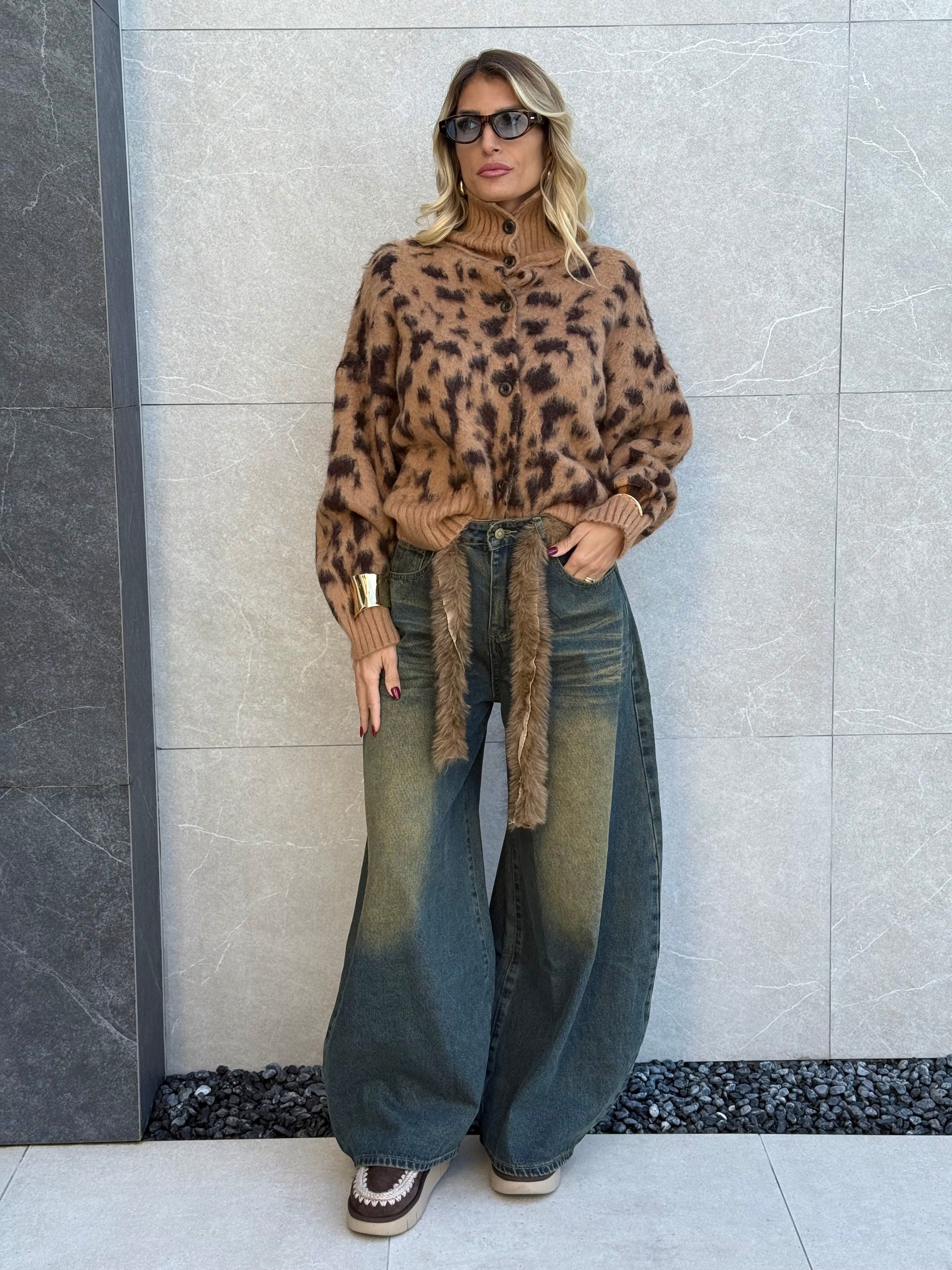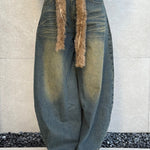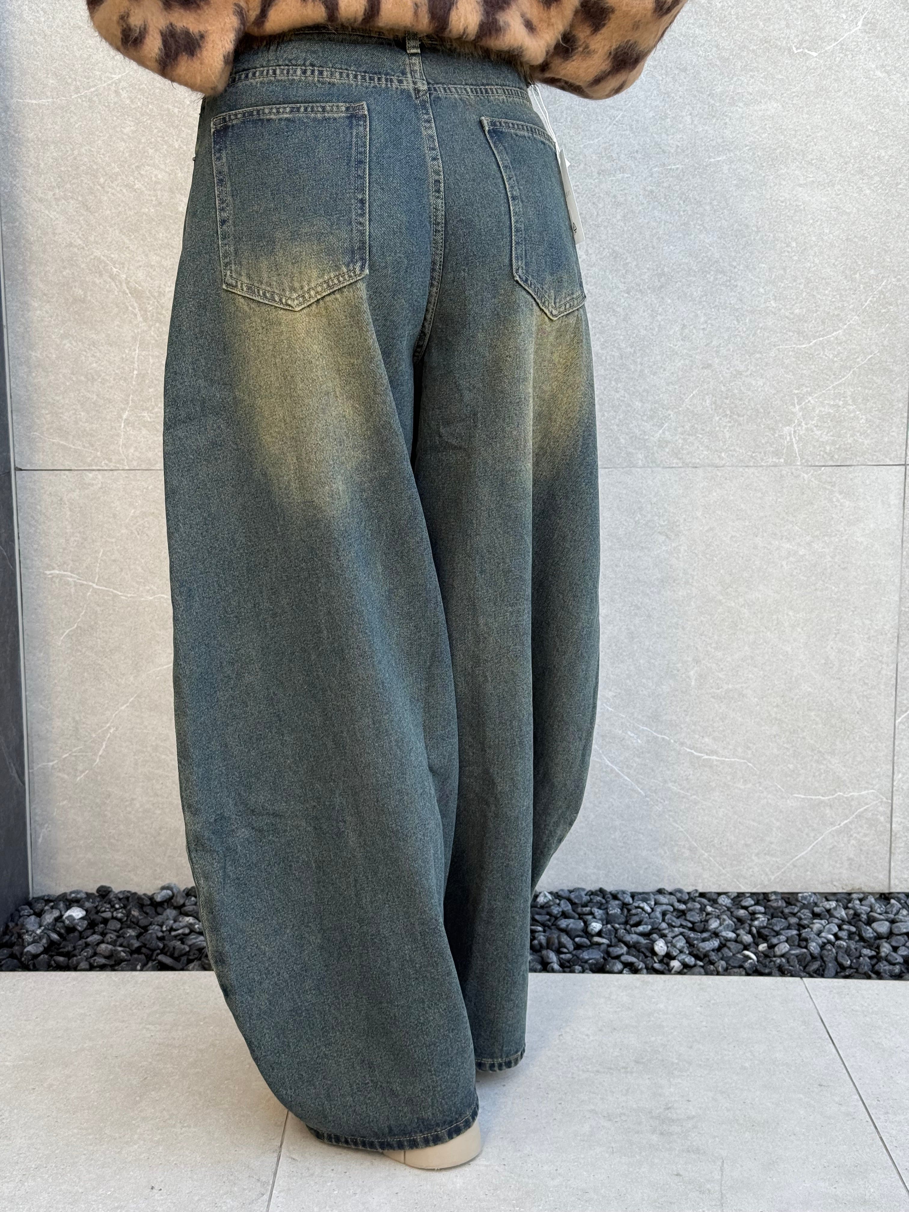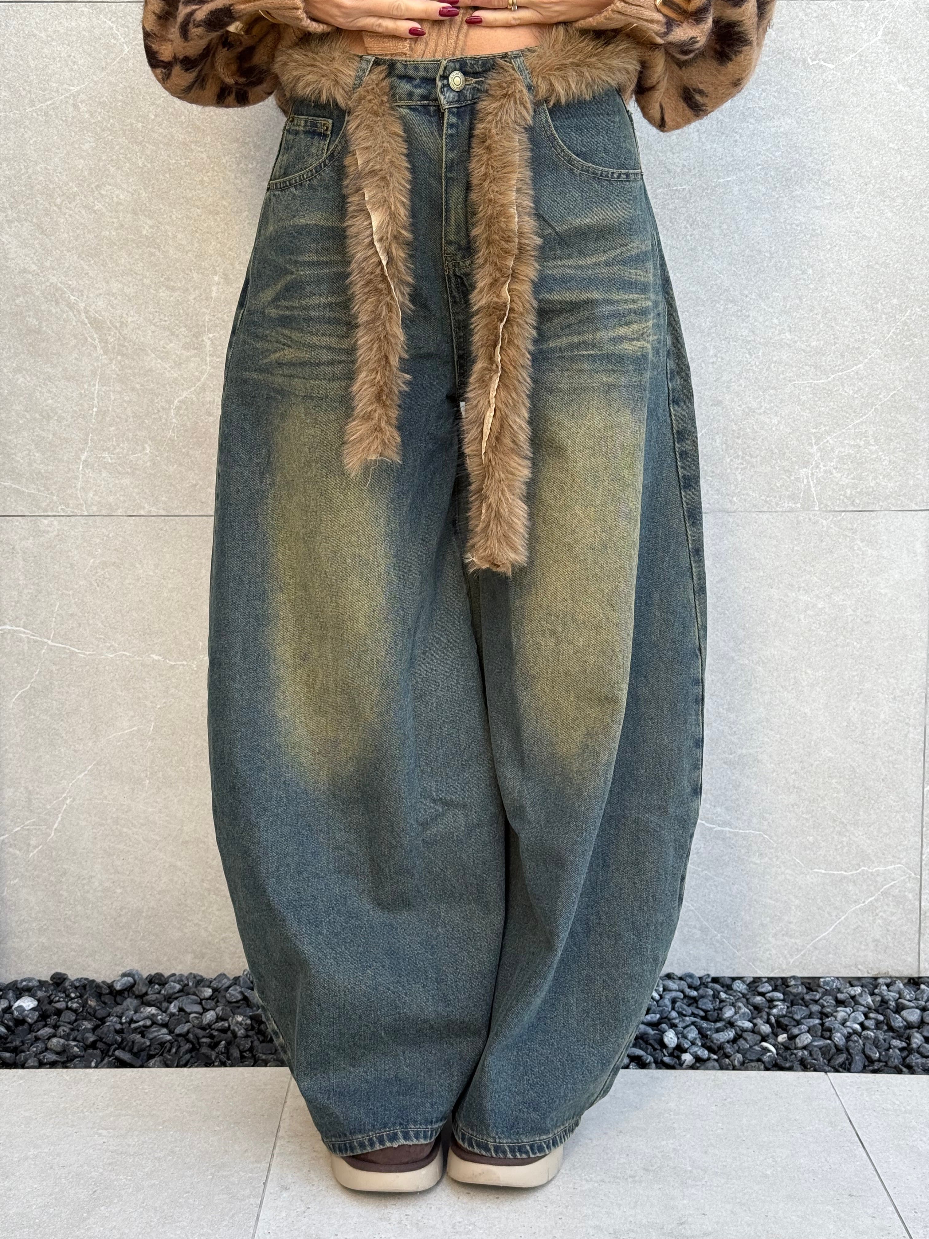 Jeans baggy sfumato con cintura pelosa inclusa.