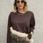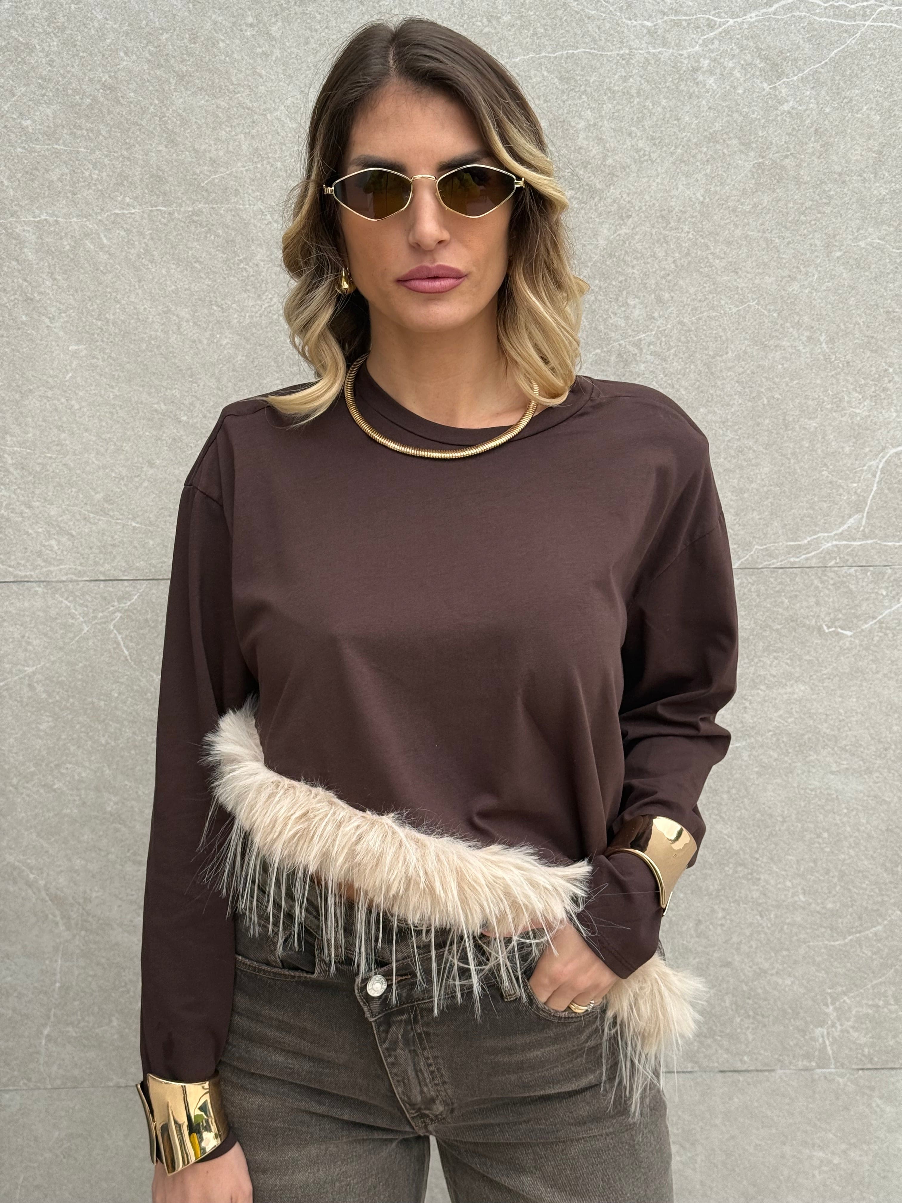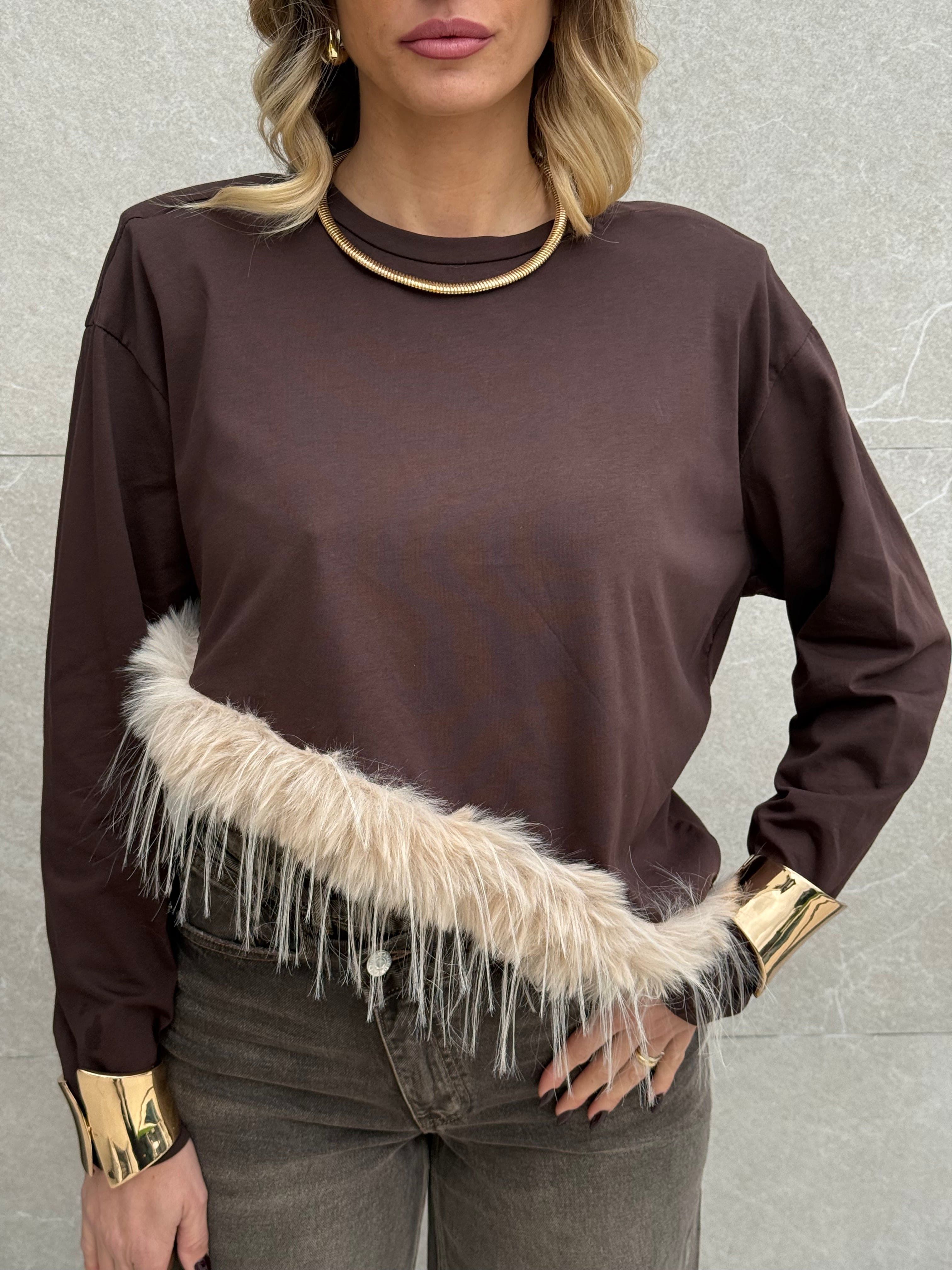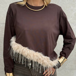 Maglia con piume sul fondo.