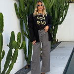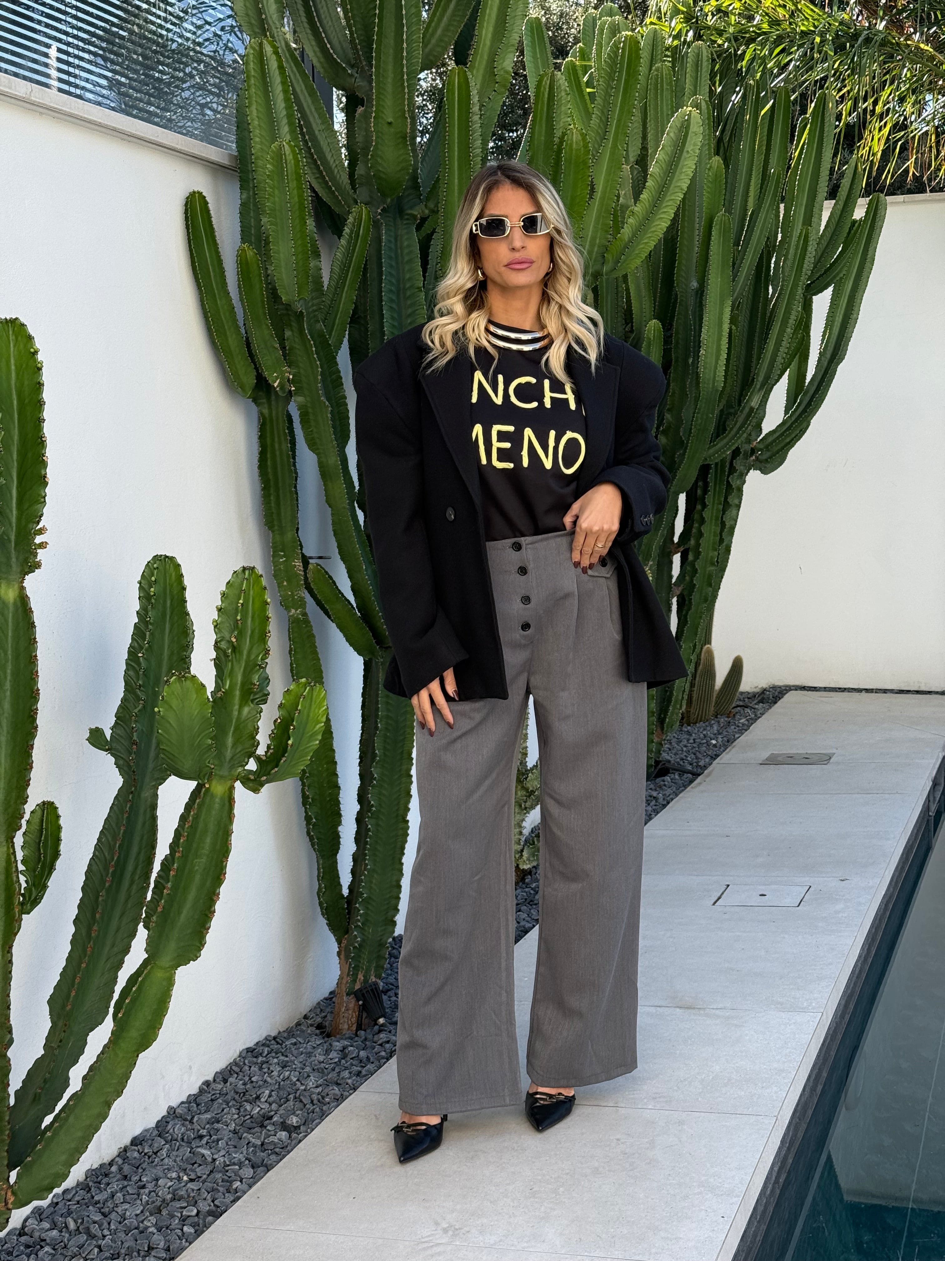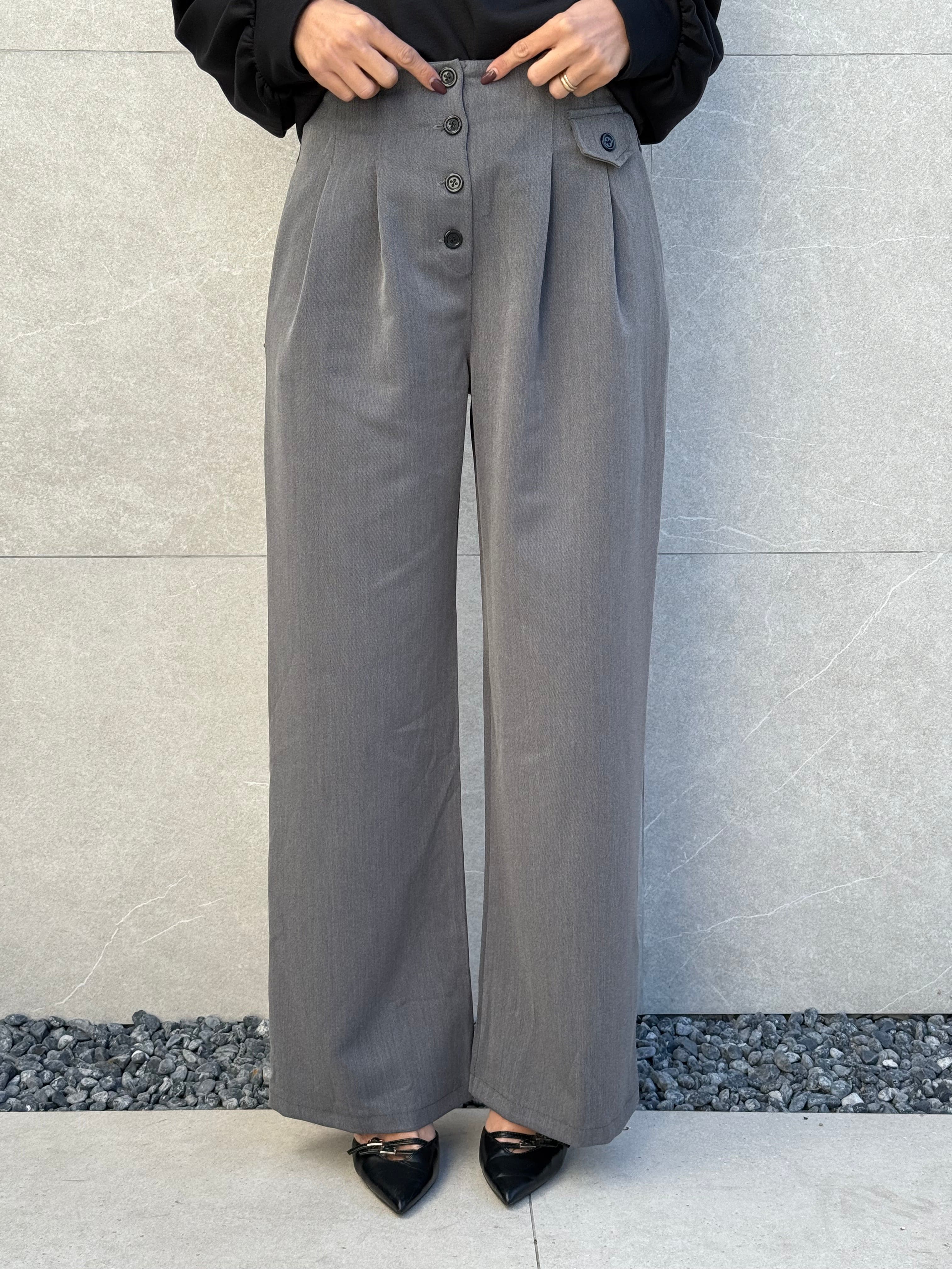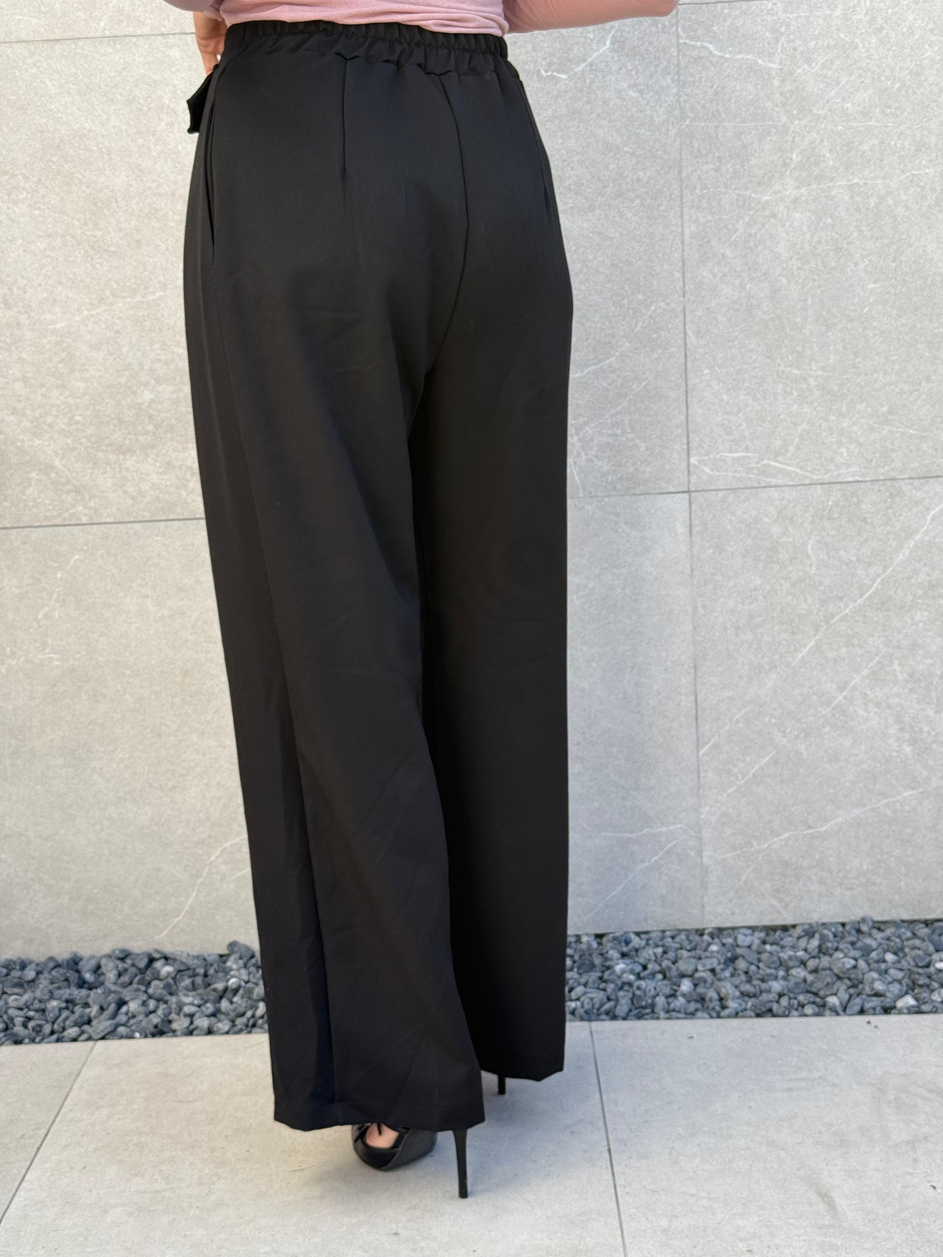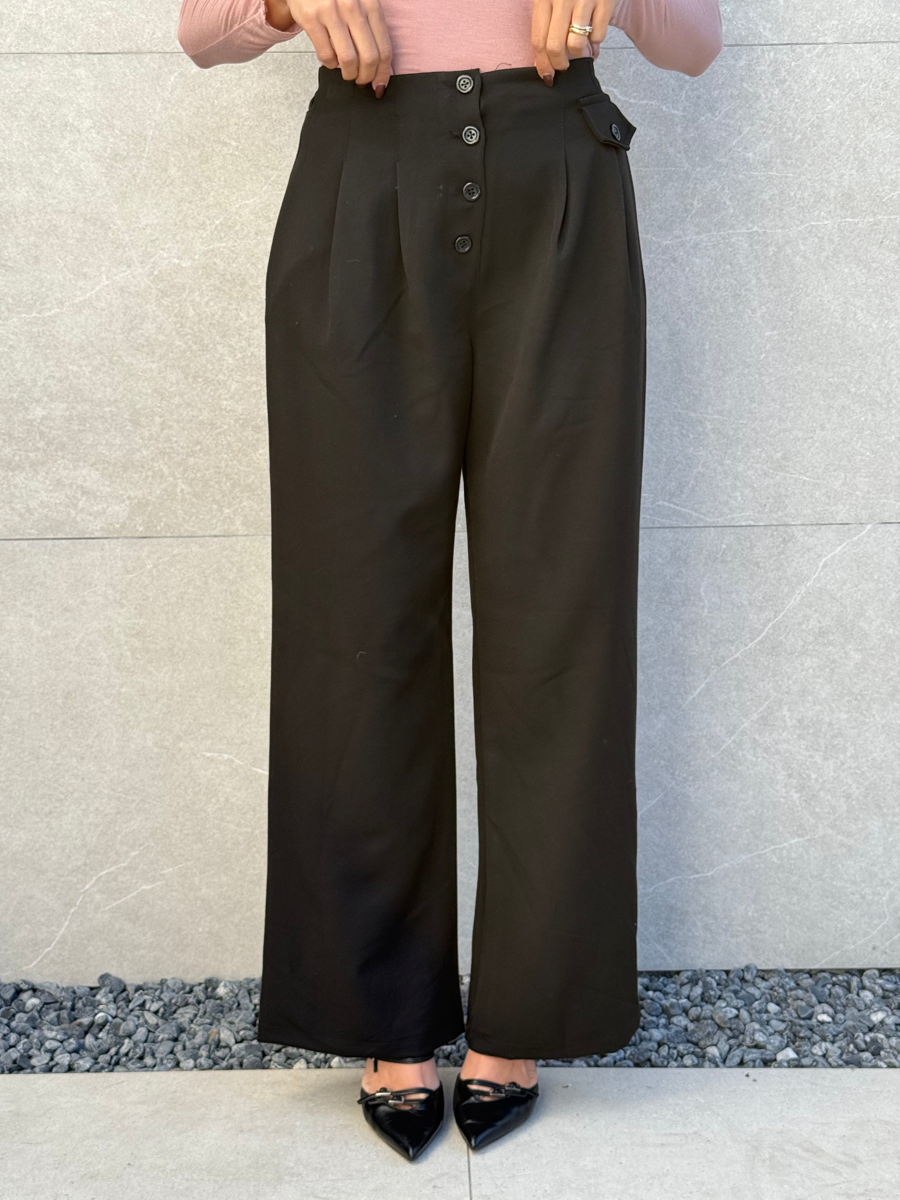 Pantalone palazzo con bottoncini ed elastico in vita taglia unica.