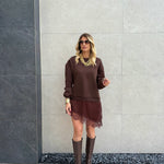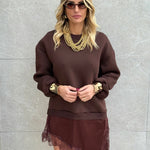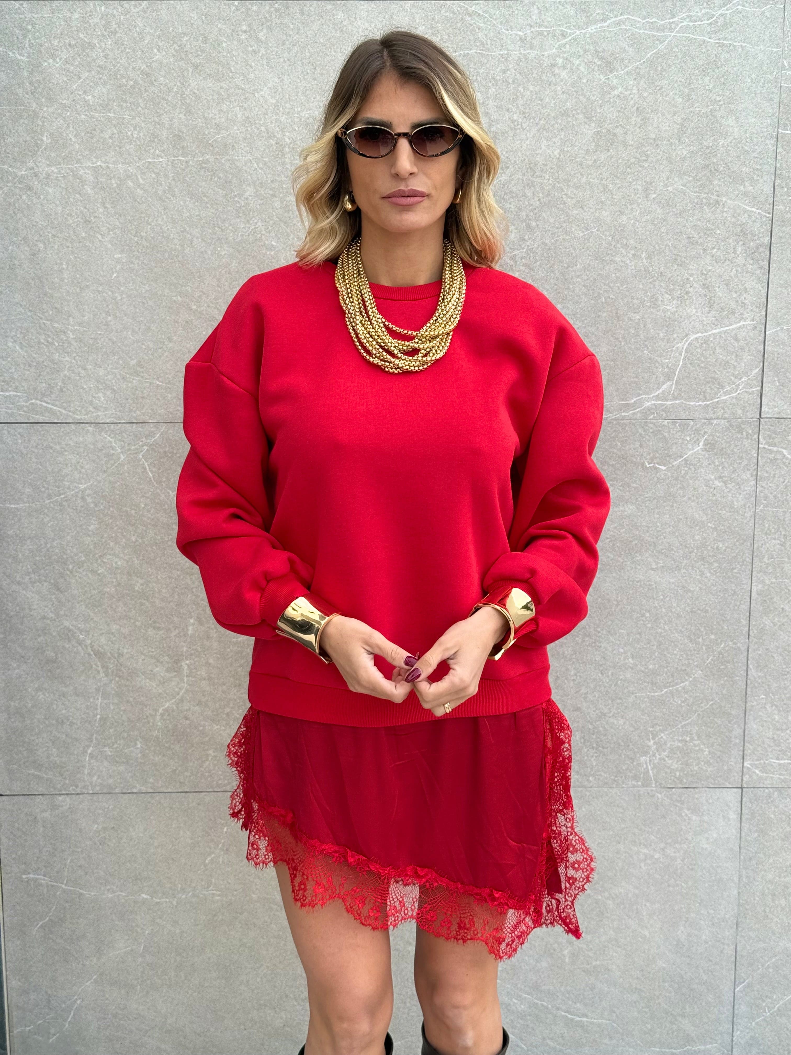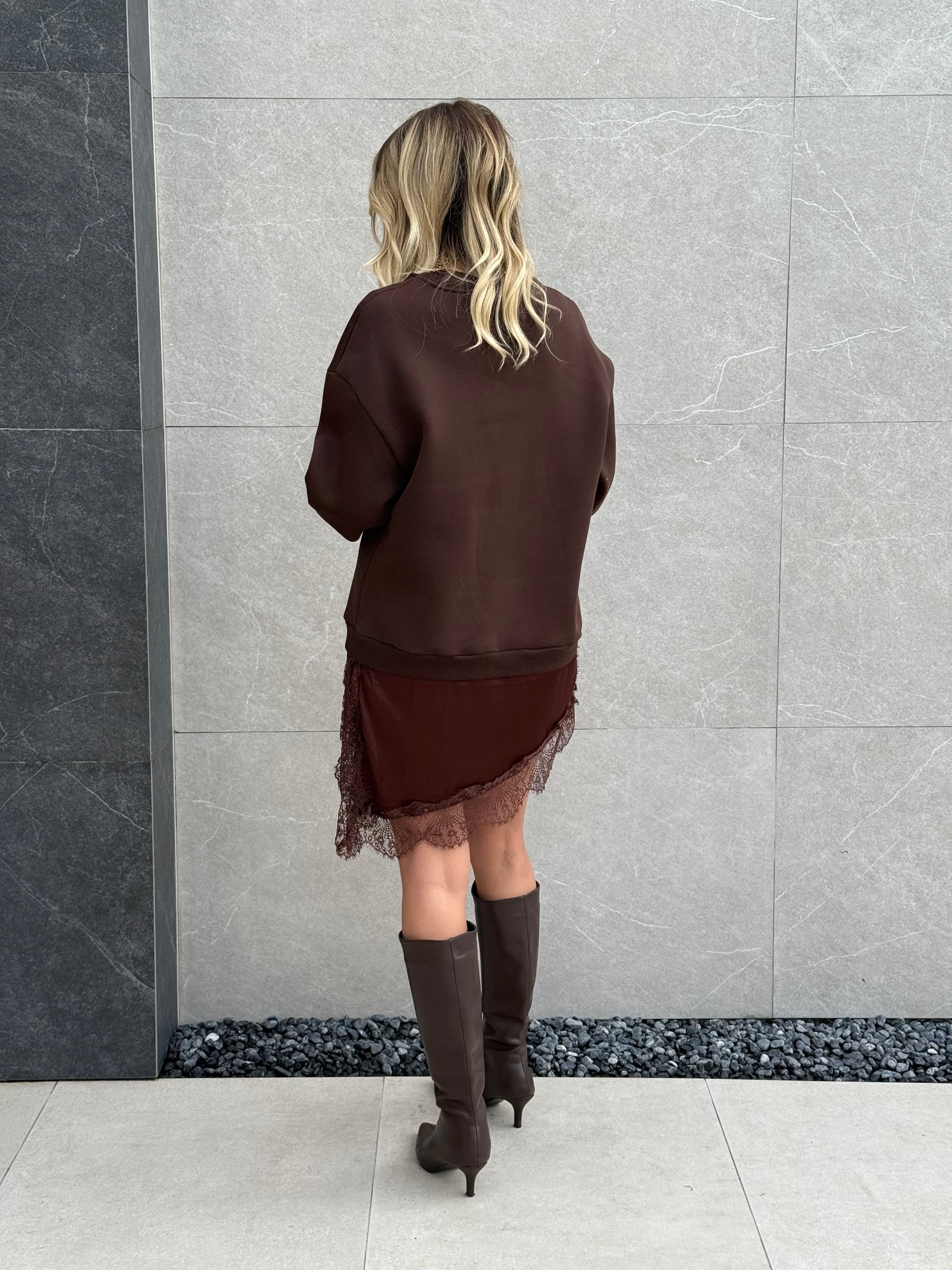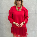 Felpa con pezzo di gonna raso in pizzo by Lumina.